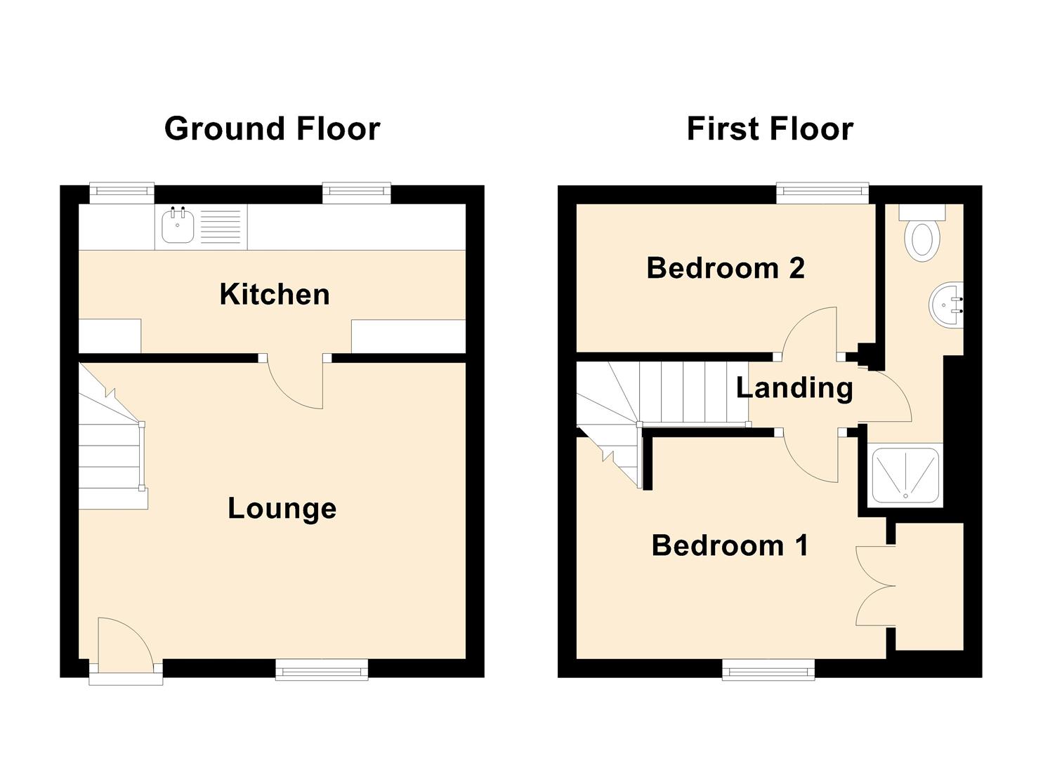Affording Living Room with turn staircase leading off to first floor, rear Kitchen with breakfast bar, Landing, Bedroom 1 with built in wardrobe, Bedroom 2, Shower Room.