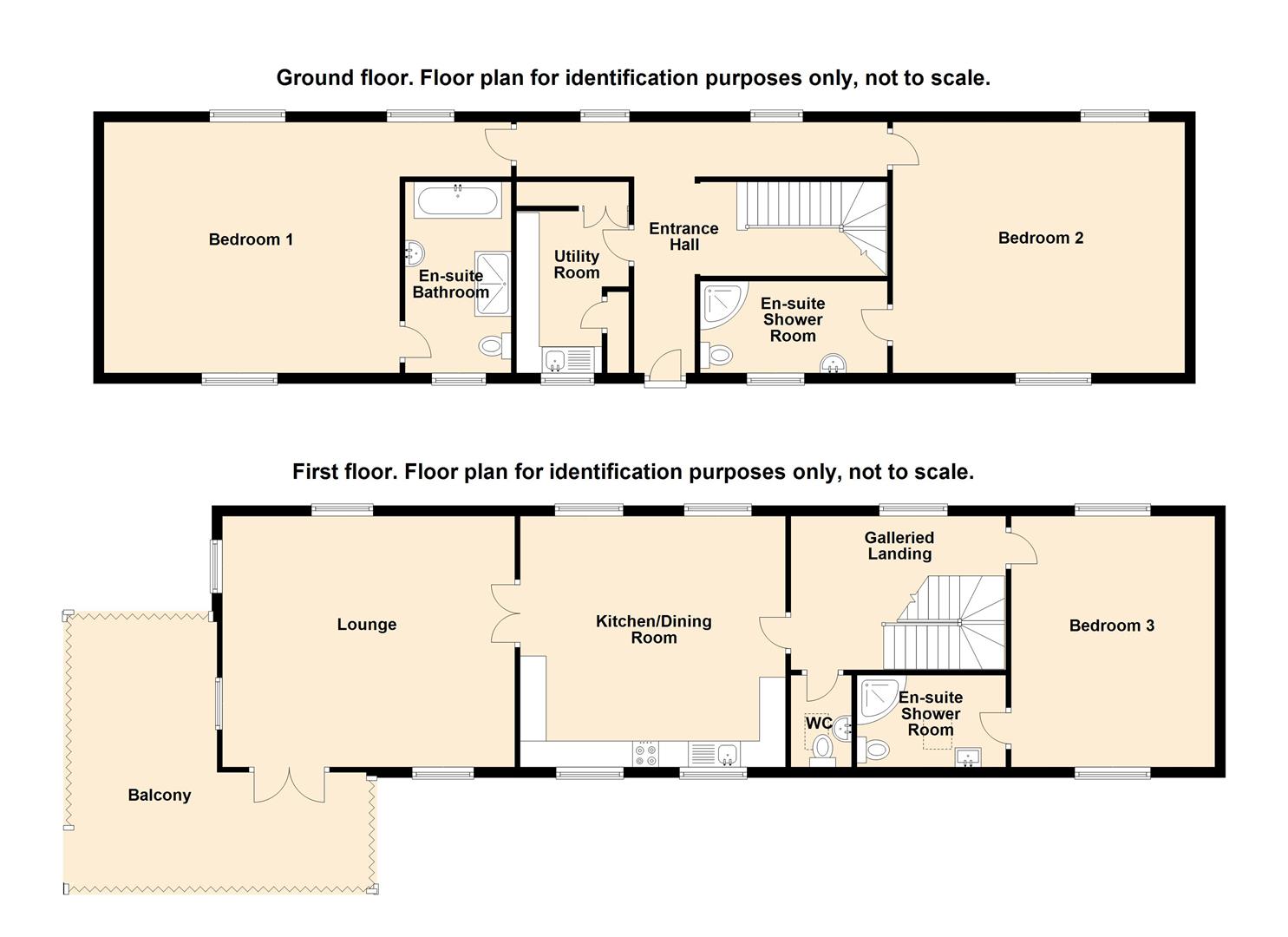 The modern Shaker-style kitchen is fitted with an excellent range of units and integrated appliances, offering a bright and welcoming space for family dining. The elegant lounge features multiple windows, a recessed fireplace with exposed beam, creating a warm and inviting atmosphere.Three double bedrooms, each with its own en-suite facilities