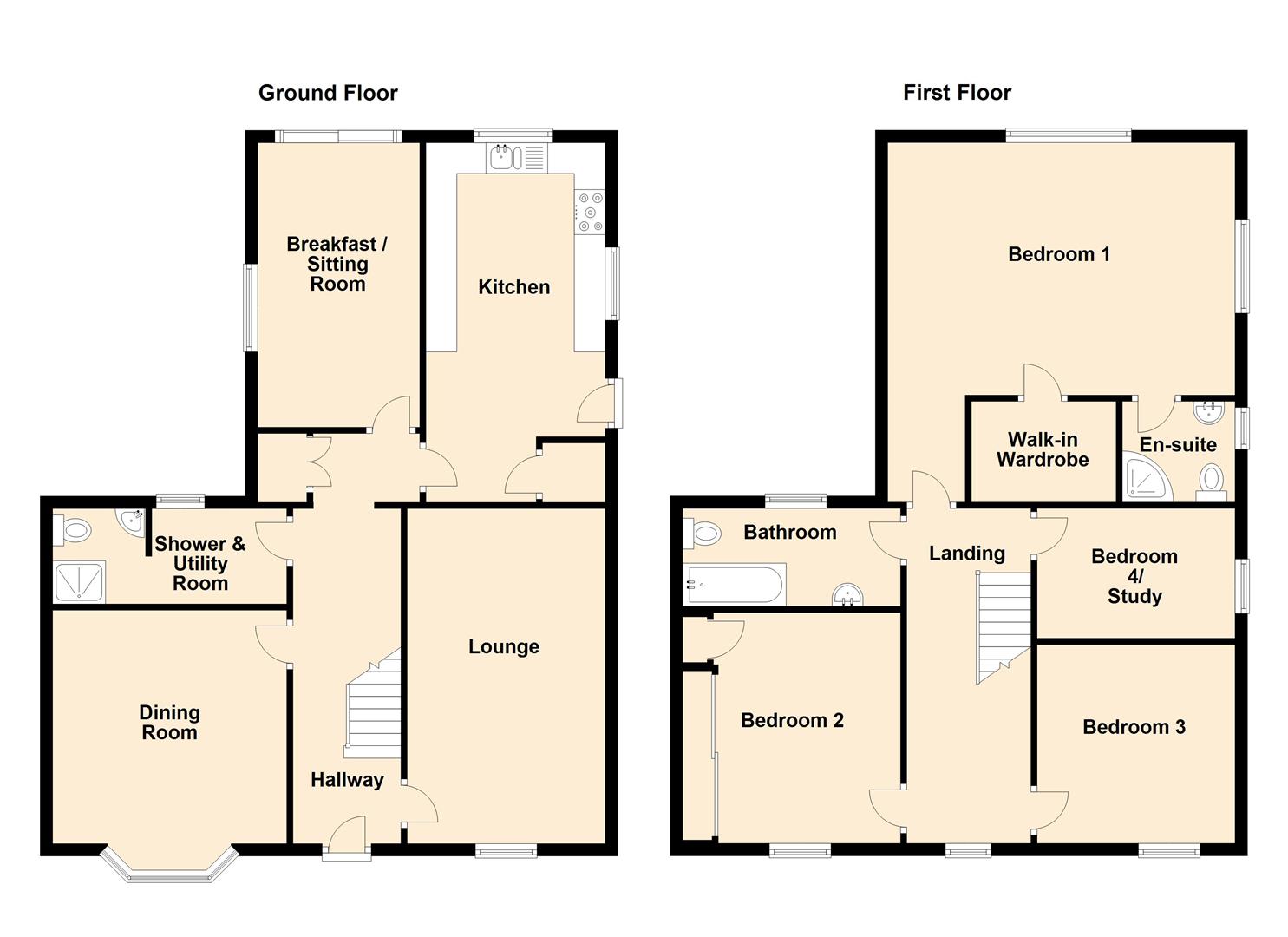 •Four bedrooms, including a spacious master suite with ensuite shower room and walk-in wardrobe.