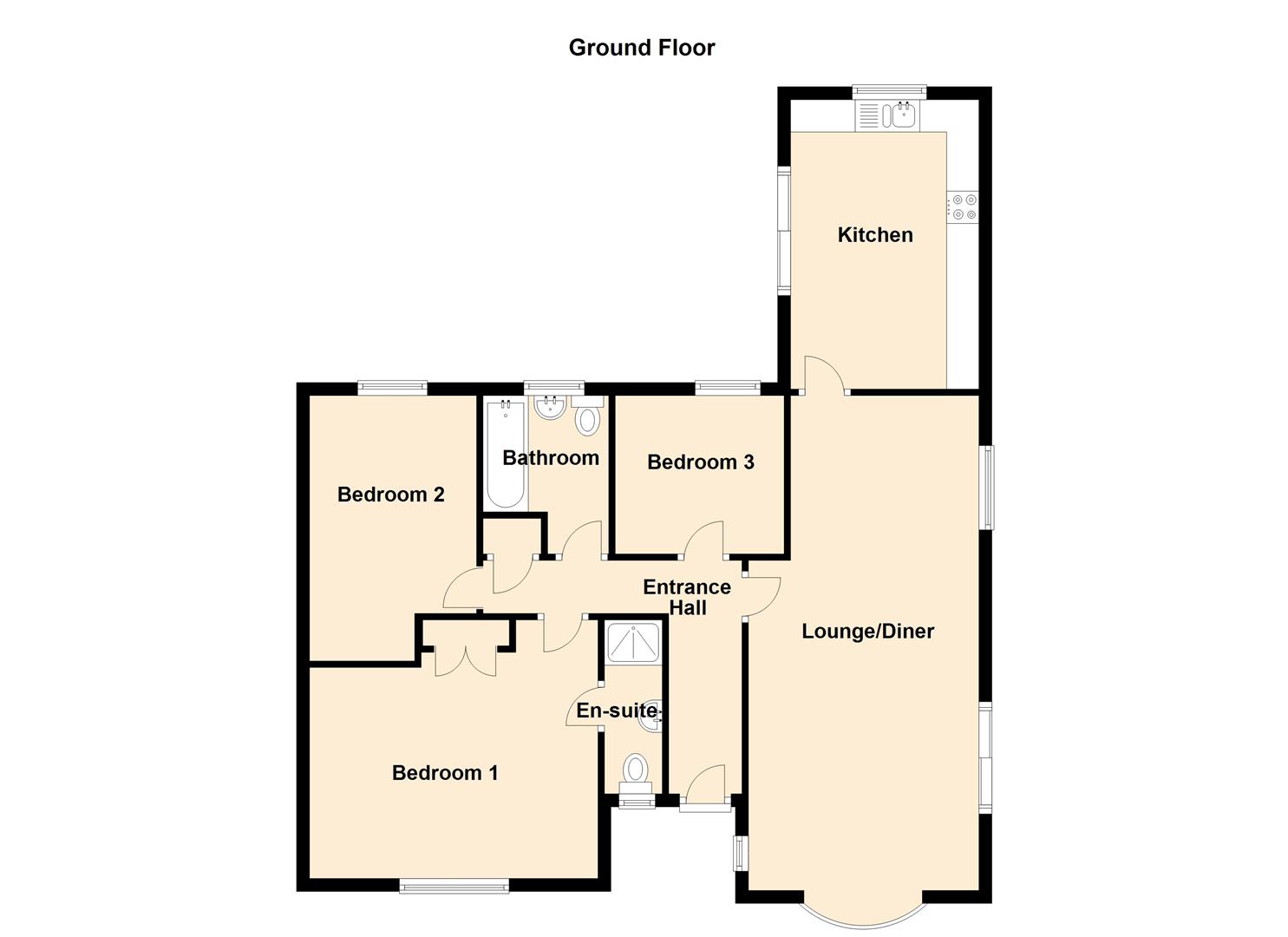 Fitted kitchen with a range of base and wall units, integrated oven, hob, and space for appliances.Master bedroom with fitted wardrobes and en-suite shower room.Two further bedrooms and a family bathroom with three-piece suite.