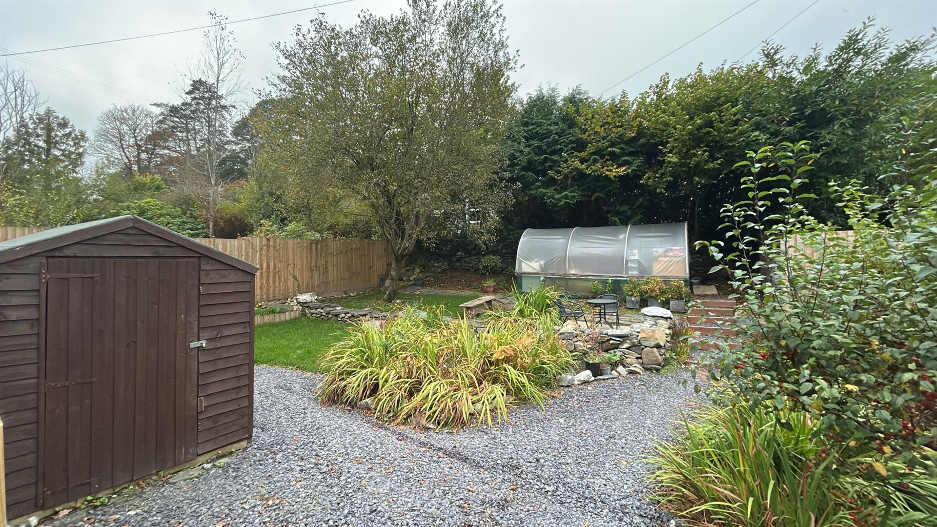 Side driveway suitable for parking, subject to providing drop kerb, timber fencing, access leading to a landscaped rear garden with grassed areas, a variety of established shrubs and plants, large rear decking, providing a private seating area. Former pig-sty/garden store, poly tunnel and oil tank.