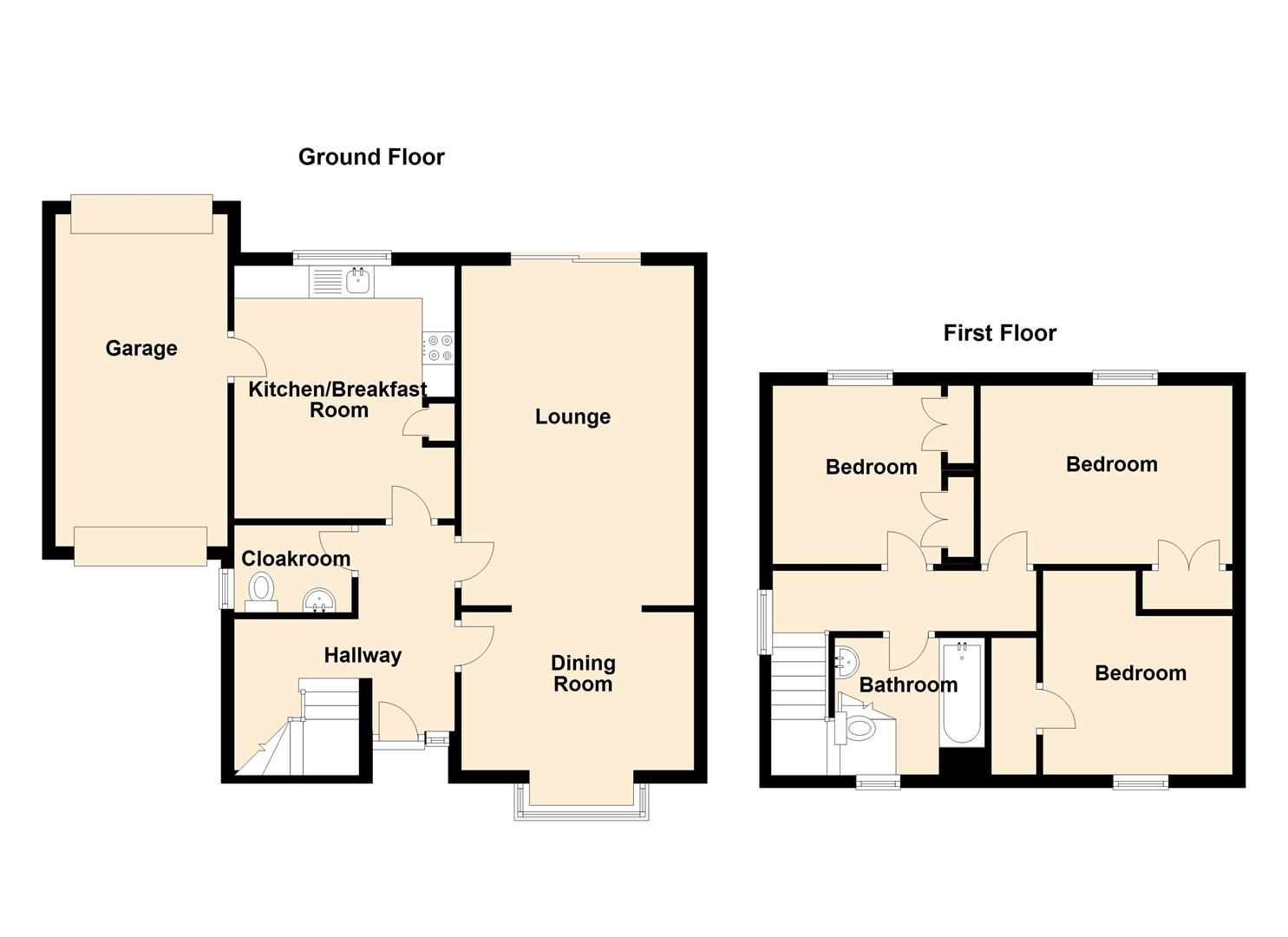 The accommodation comprises Reception hallway with cloakroom, spacious dual-aspect Lounge with patio doors leading out to the rear garden, Dining area, and a modern fitted Kitchen with garden outlook, three good-sized bedrooms and family bathroom.