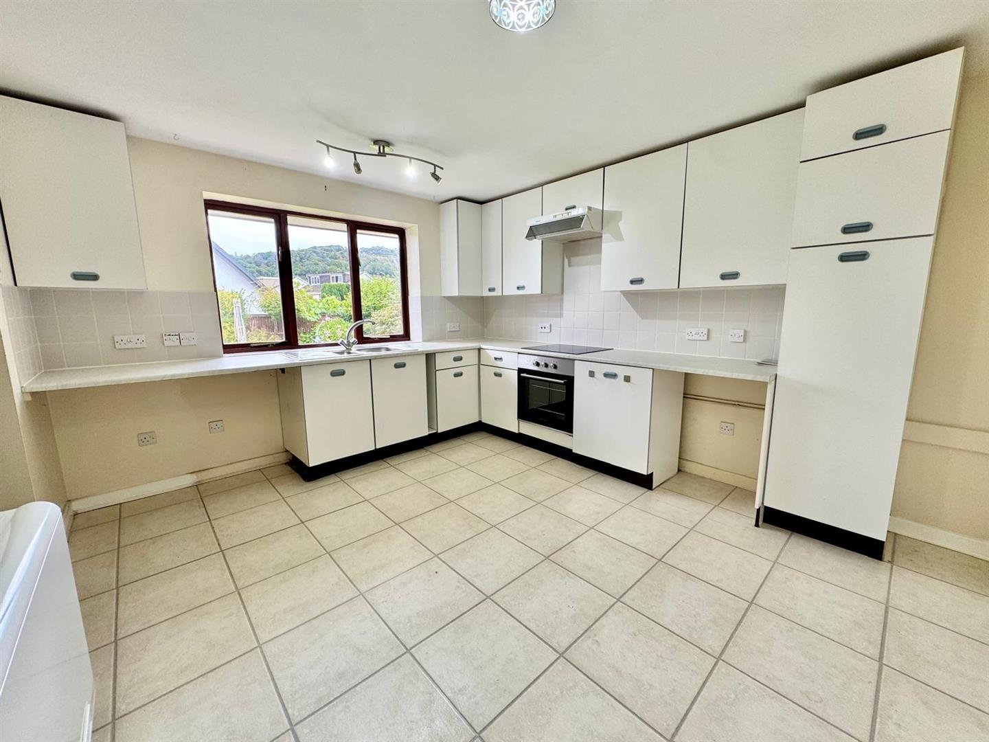 Fitted base and wall units with complimentary worktops, stainless steel oven, four plate ceramic hob, filter extractor above, tall cupboard, space and plumbing for automatic washing machine and dishwasher, 1.5 bowl single drainer sink, space for fridge, sealed unit double glazed window overlooking rear of property, tiled floor. Dining area with night storage heater, fire door leading through to side garage (2.66m x 5.2m) with up and over door to front and rear allowing through access for parking to the rear if required. Electric meters, light connected, water tap.