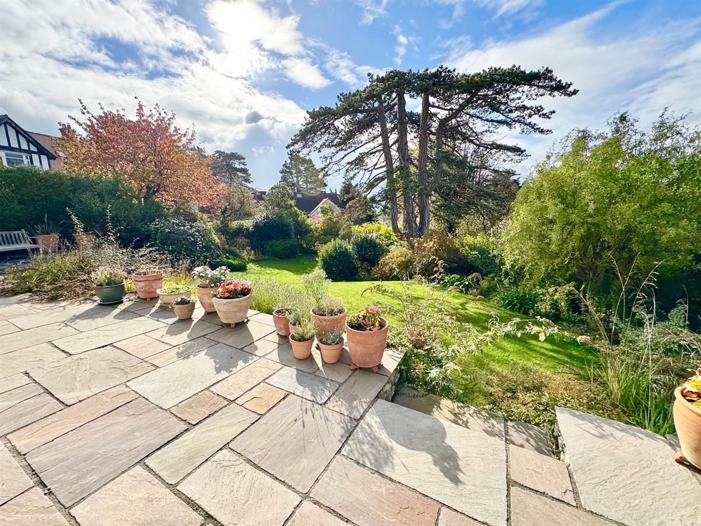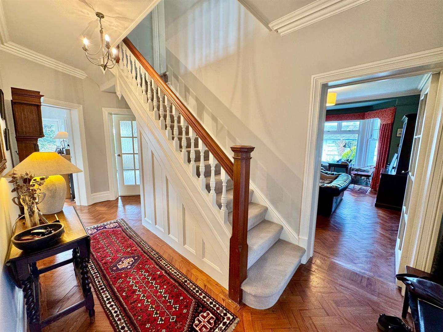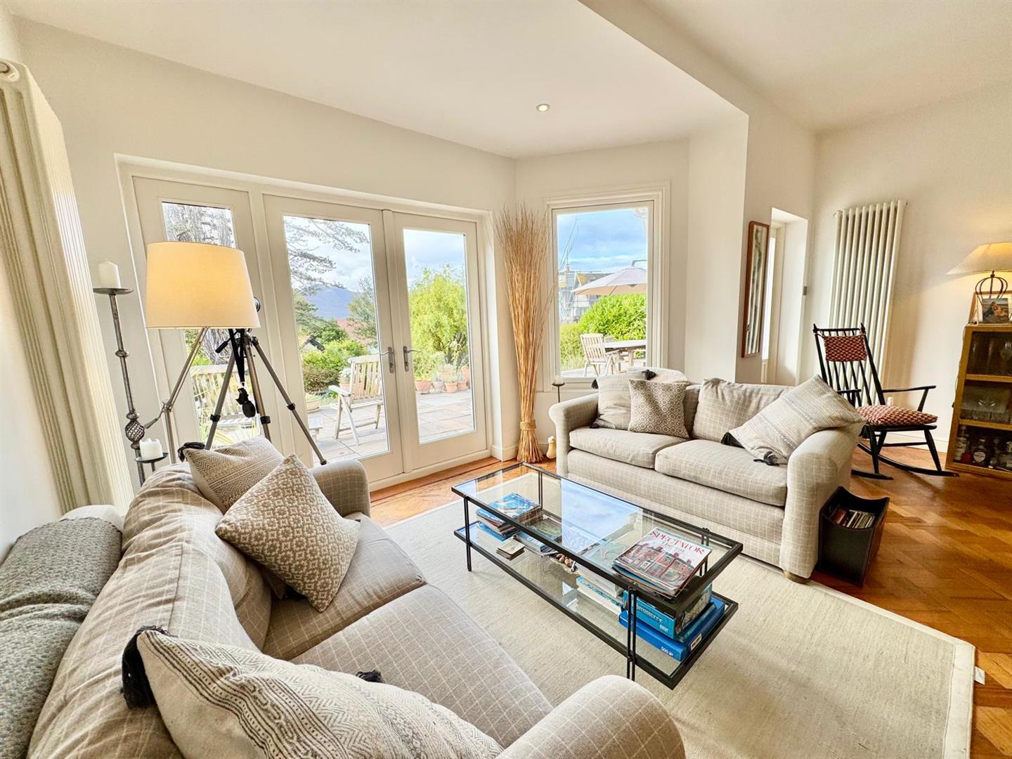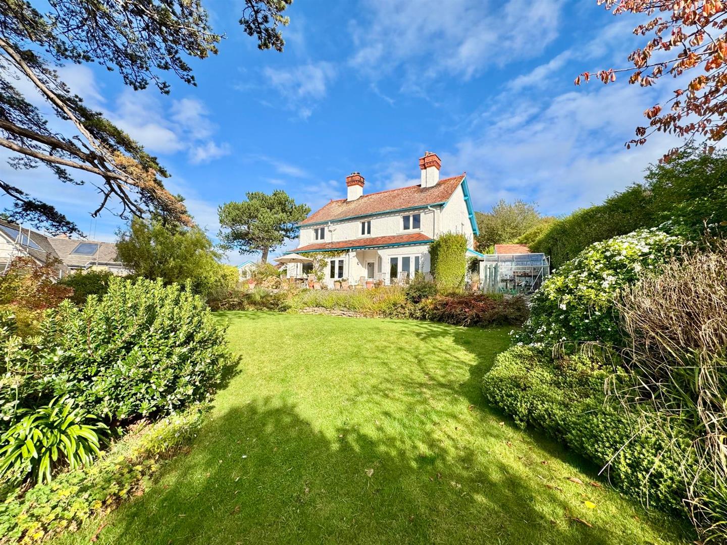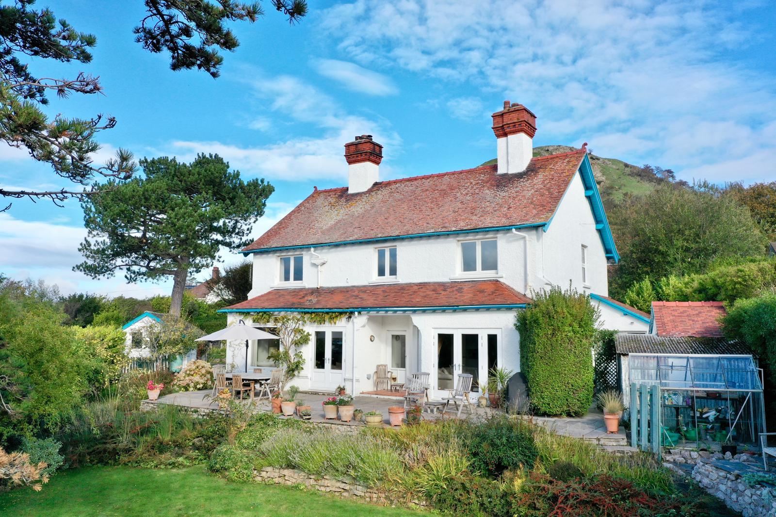 Set within mature, landscaped gardens, this superb four/five-bedroom family home has been thoughtfully updated and enhanced in recent years to offer elegant, spacious living with a blend of classic charm and modern convenience. The property benefits from a rear south-facing sun terrace, ideal for al fresco dining and enjoying the far-reaching coastal views.