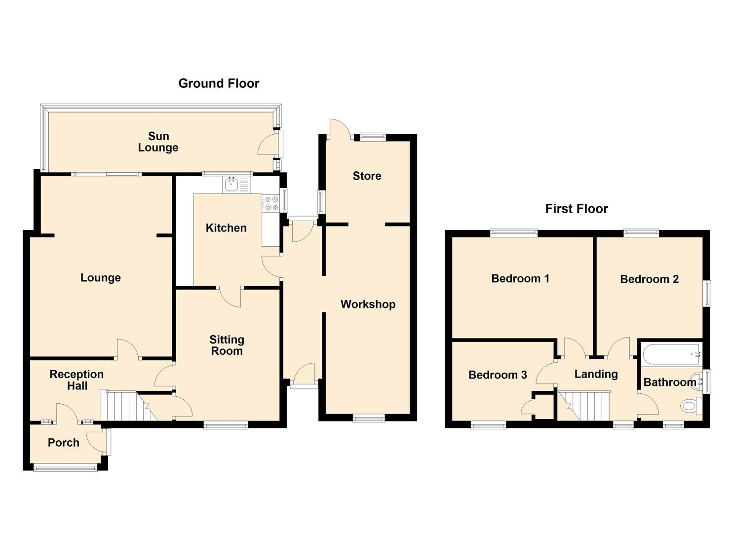 Base and wall cupboards; worktops; tall cupboards; gas hob; filter extractor; oven (not tested) timber clad ceiling; window to rear outside elevation. Timber and glazed door to rear cupboard entrance passage with door to front and rear of property; wall mounted glow worm central heating boiler; open access to workshop and store 5.45m x 2.42m and 2.44m x 2.37m work bench power and light connected.