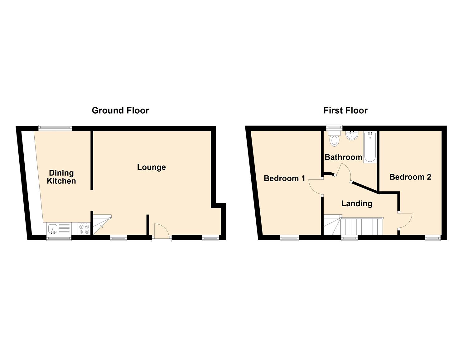 To the first floor, the property offers two well-proportioned double bedrooms, both enjoying natural light, together with a bathroom and a central landing area.