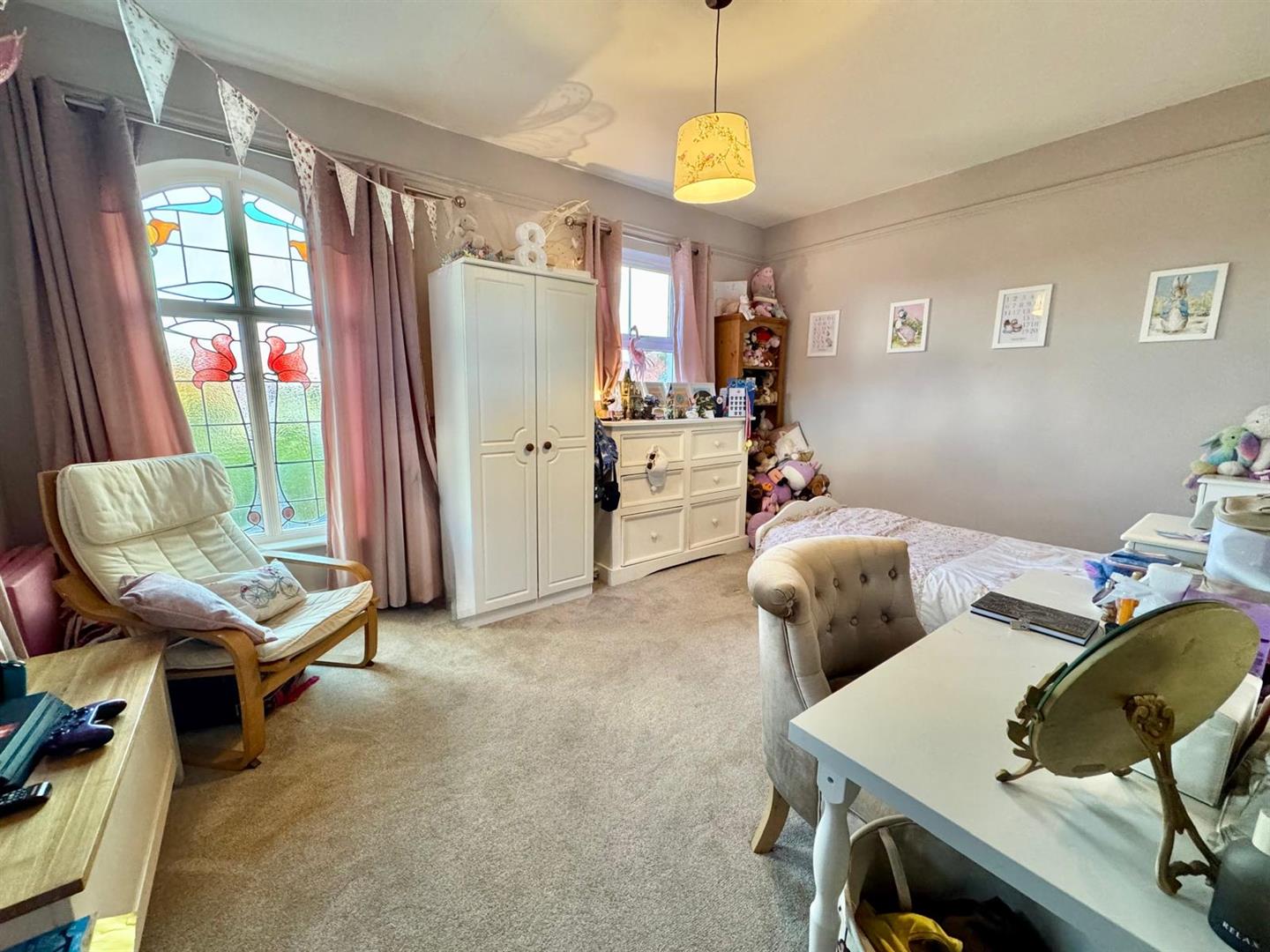 Rear and side uPVC double glazed windows, arched leaded and stained window, picture rail, radiator.