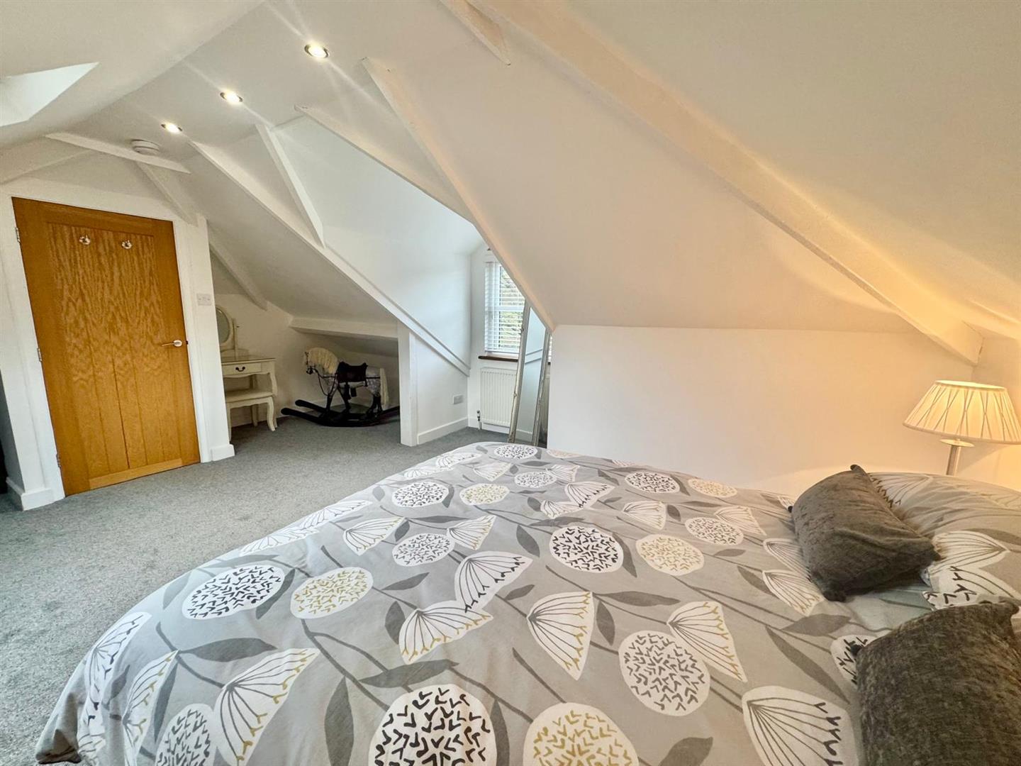 UPVC double glazed window overlooking rear, double panelled radiator, modern fitted wardrobe with sliding doors.