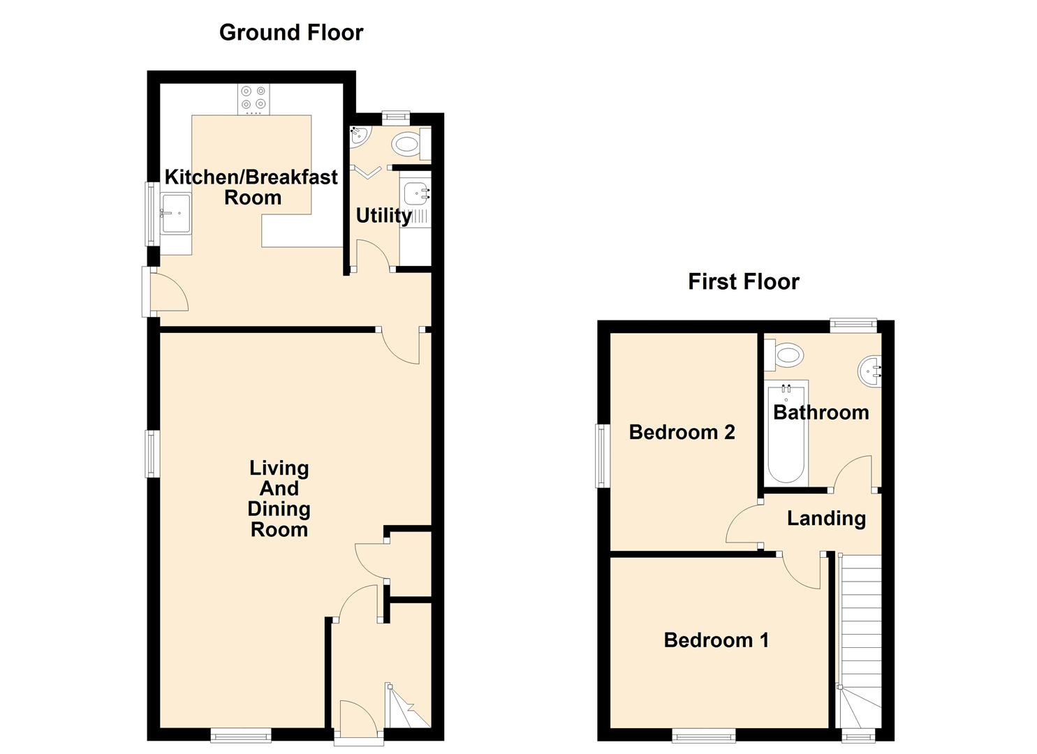 To the first floor are two well-proportioned double bedrooms together with a family bathroom fitted with a modern white suite.
