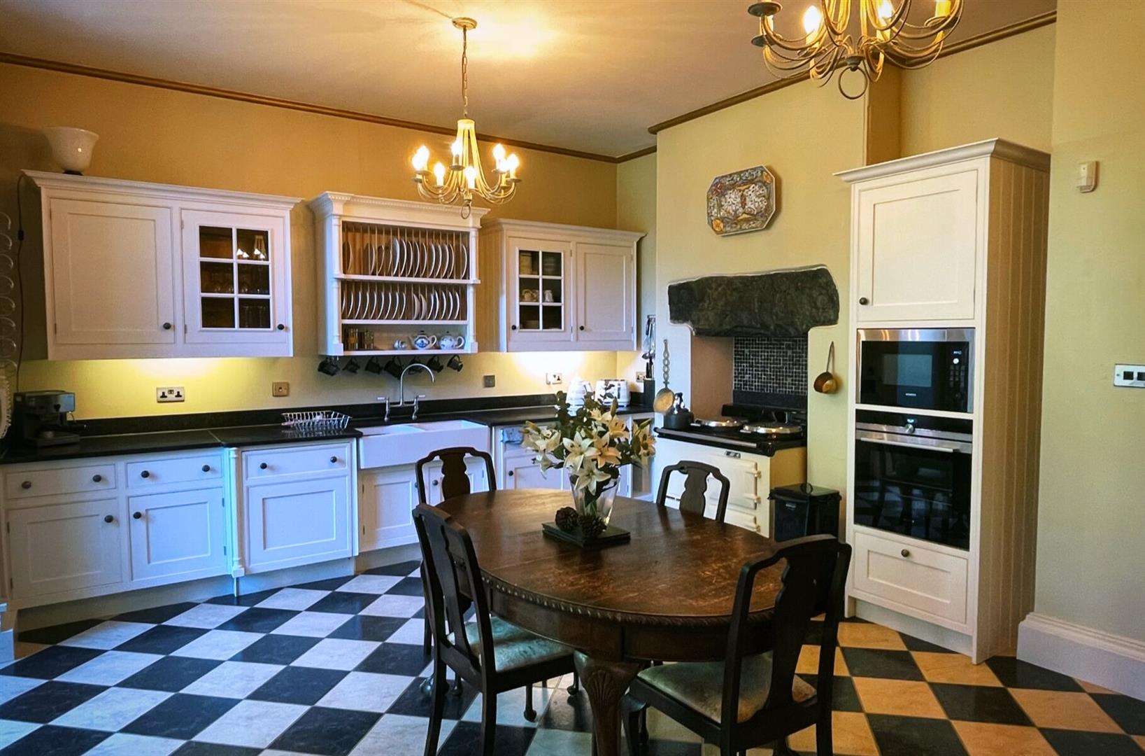 The main residence offers spacious and well-appointed accommodation, enhanced by quality fixtures and fittings throughout. Internally, the home perfectly balances period charm with modern comfort. A superb country kitchen features bespoke cabinetry, traditional range cooker, creating a warm and sociable heart to the home. Elegant reception rooms enjoy high ceilings, feature fireplaces and a wonderful sense of character, ideal for both relaxed family living and entertaining.