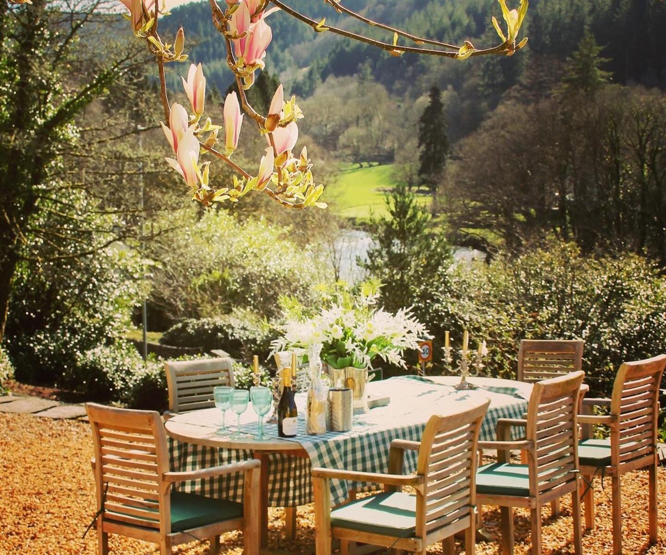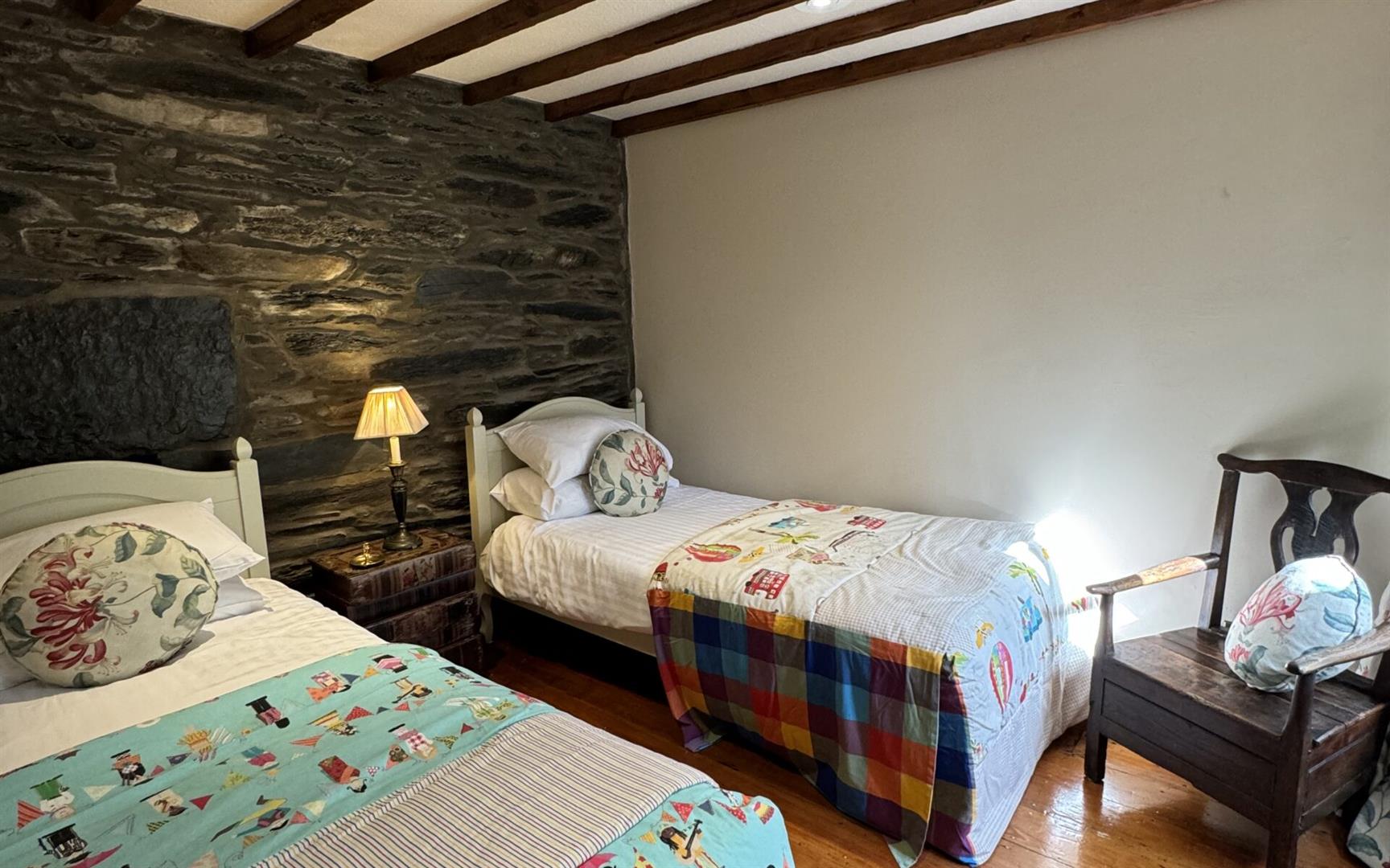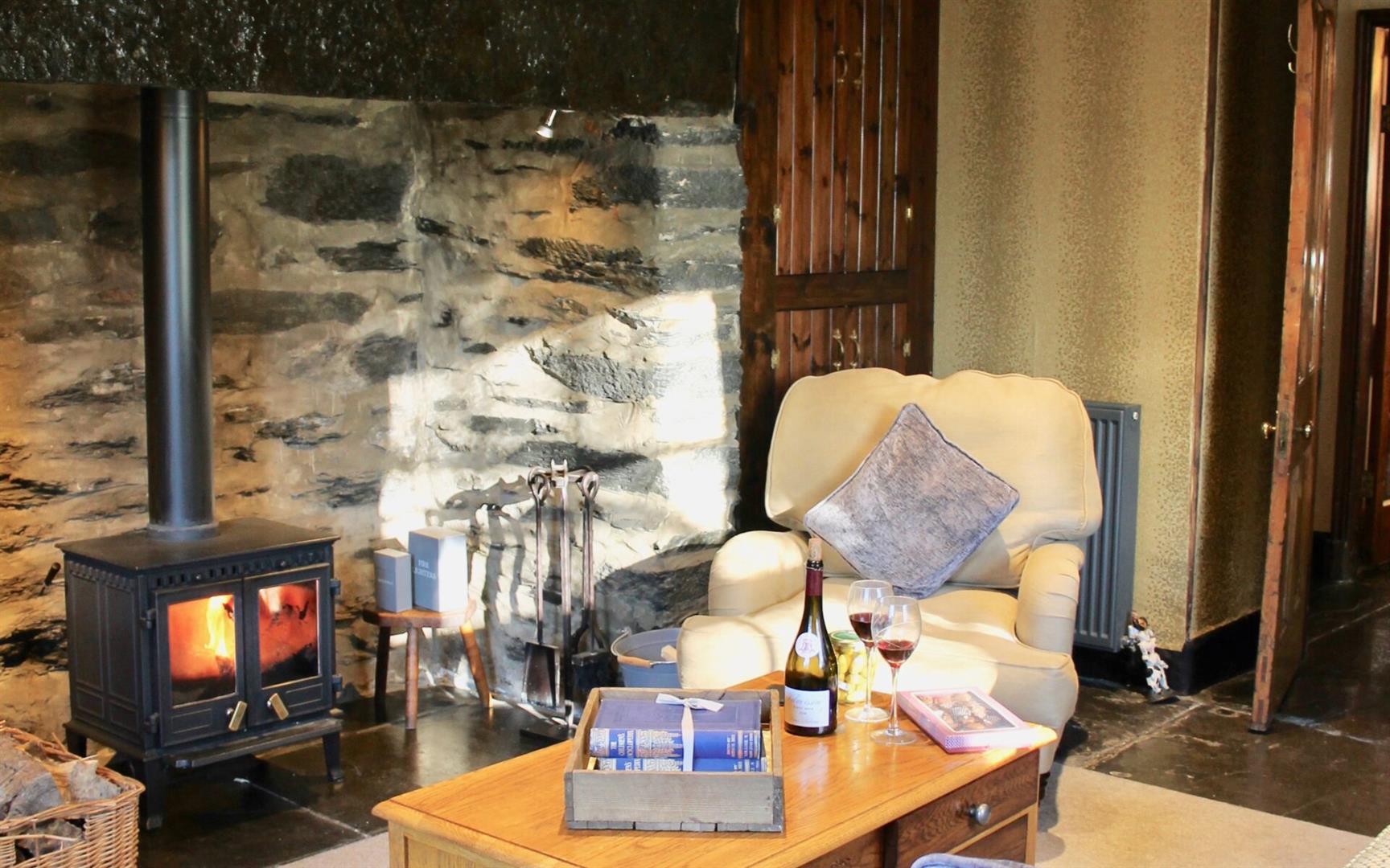 Overlooking garden lawns and Lledr Valley. Two radiators. Beamed ceiling. Feature fireplace. Wooden floorboards. T.V. point. Feature vaulted ceiling.