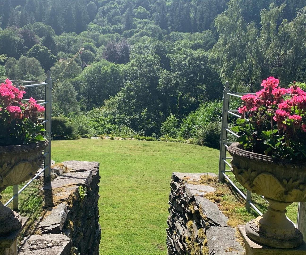 The landscaped gardens are a particular highlight. Rolling lawns, mature shrubs and colourful planting provide year-round interest, while seating areas and terraces offer wonderful vantage points from which to enjoy the scenery. The property’s elevated position ensures privacy and spectacular outlooks, creating a true sense of retreat whilst remaining within convenient reach of local amenities.