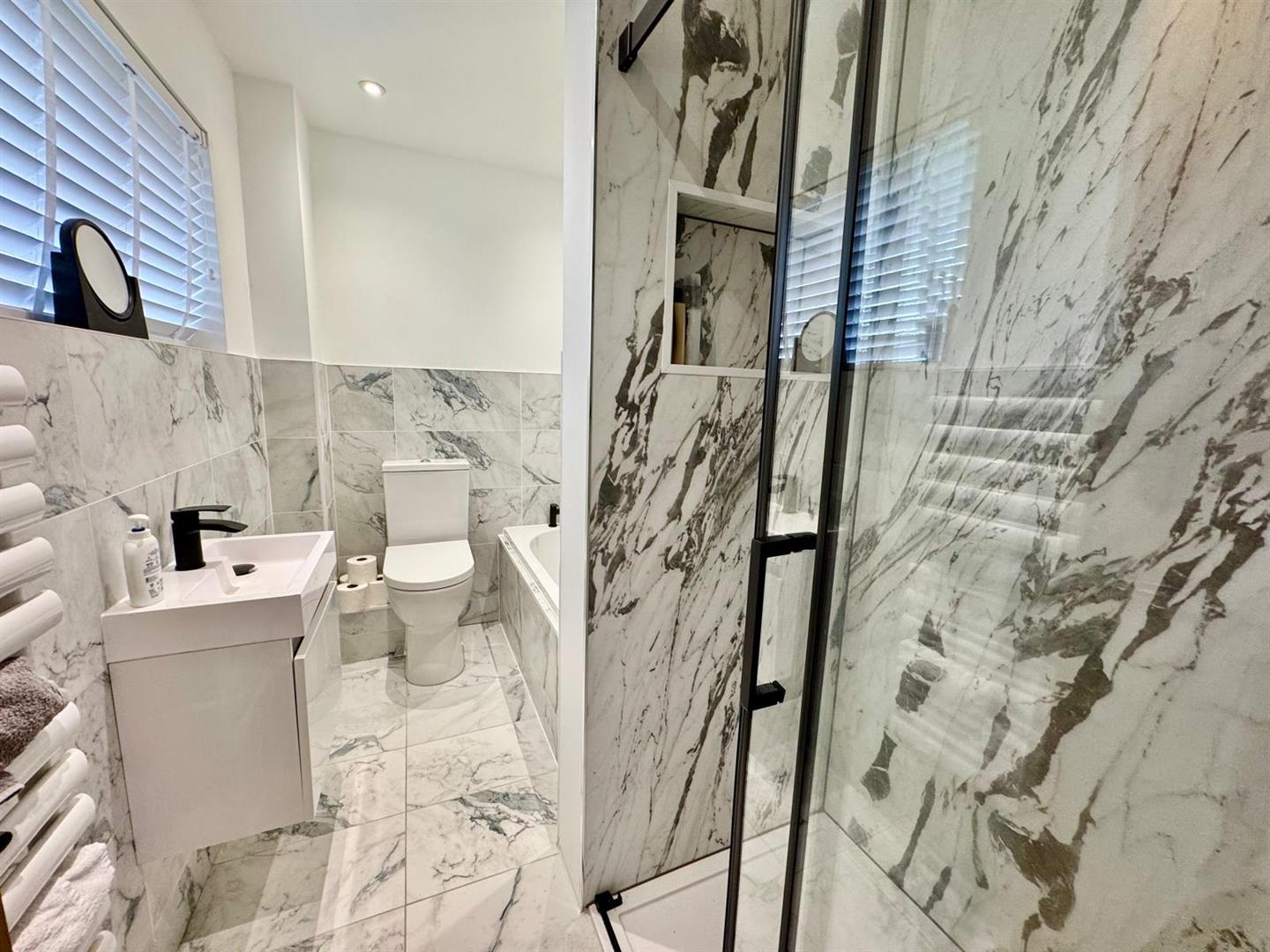 To the first floor are two generous double bedrooms, both well-presented and enjoying ample natural light, along with a contemporary four-piece bathroom suite finished with modern fittings.
