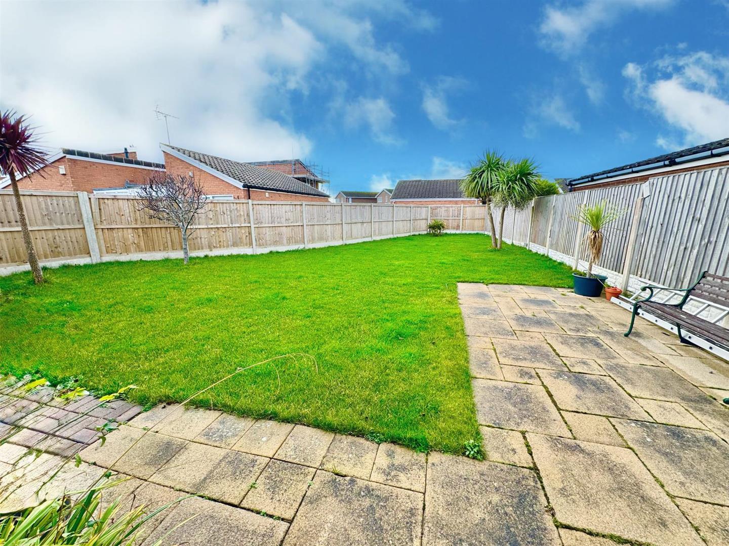 Rear Garden laid to lawn with flagged patio area; screen fencing.