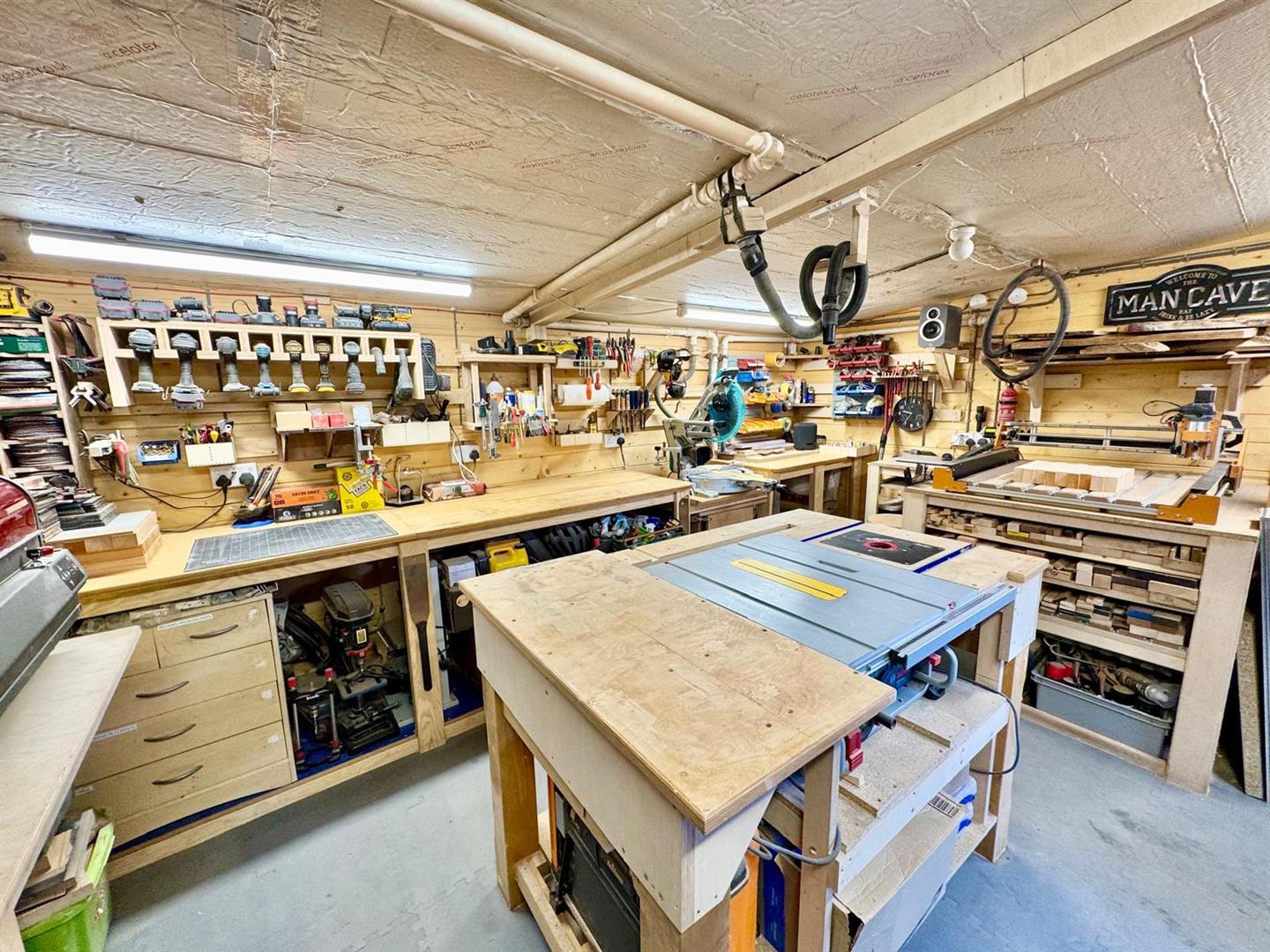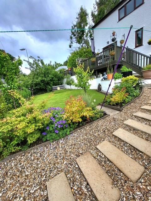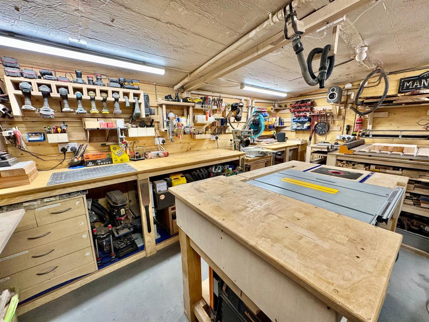 Landscaped gardens laid mainly to lawn with established shrubs and plants and a substantial purpose built workshop, ideal for hobby use, storage or home working.