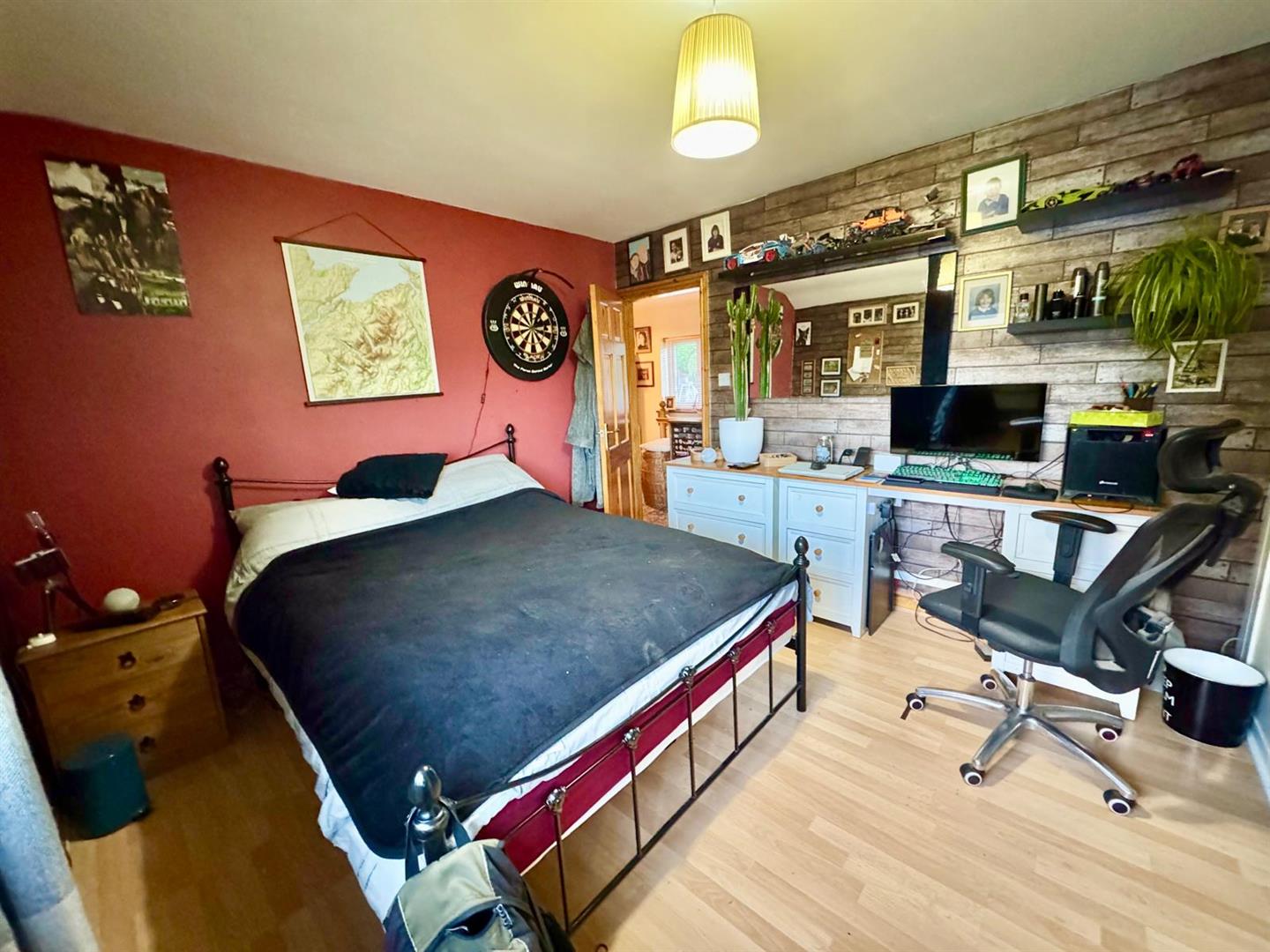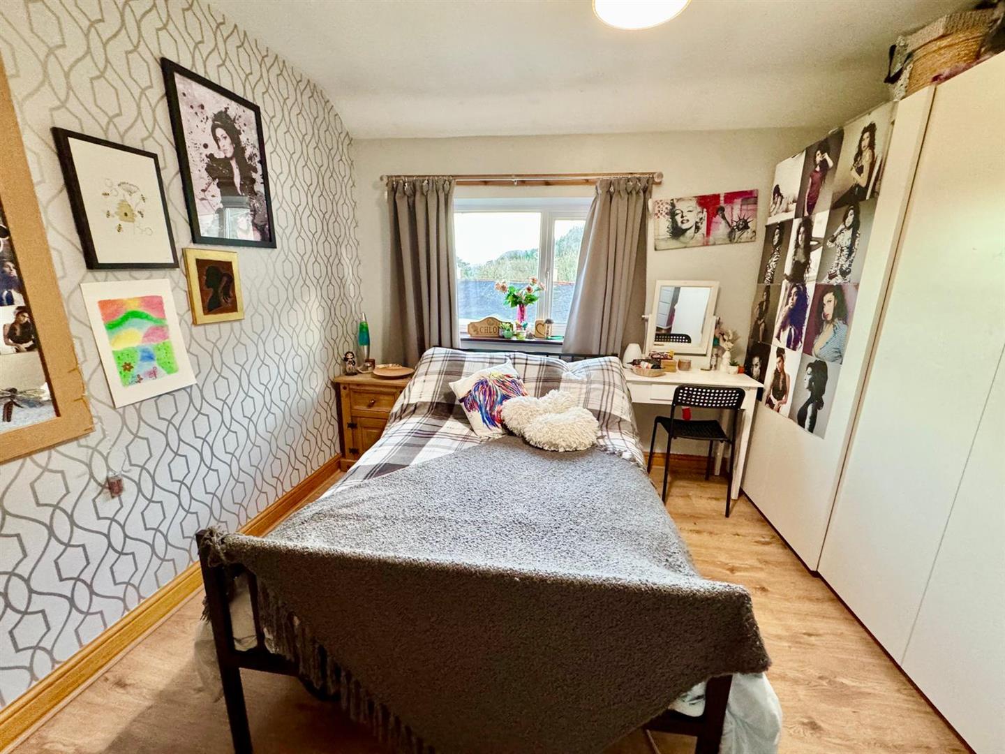 Including wardrobes along one wall with laminated timber effect floor; radiator; uPVC double glazed window overlooking rear with views.
