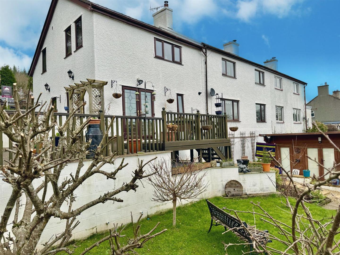 Landscaped gardens laid mainly to lawn with established shrubs and planting. A large raised sun terrace and decked seating area provides an excellent outdoor entertaining space, taking full advantage of the elevated position and far reaching views. Substantial purpose built workshop, ideal for hobby use, storage or home working.