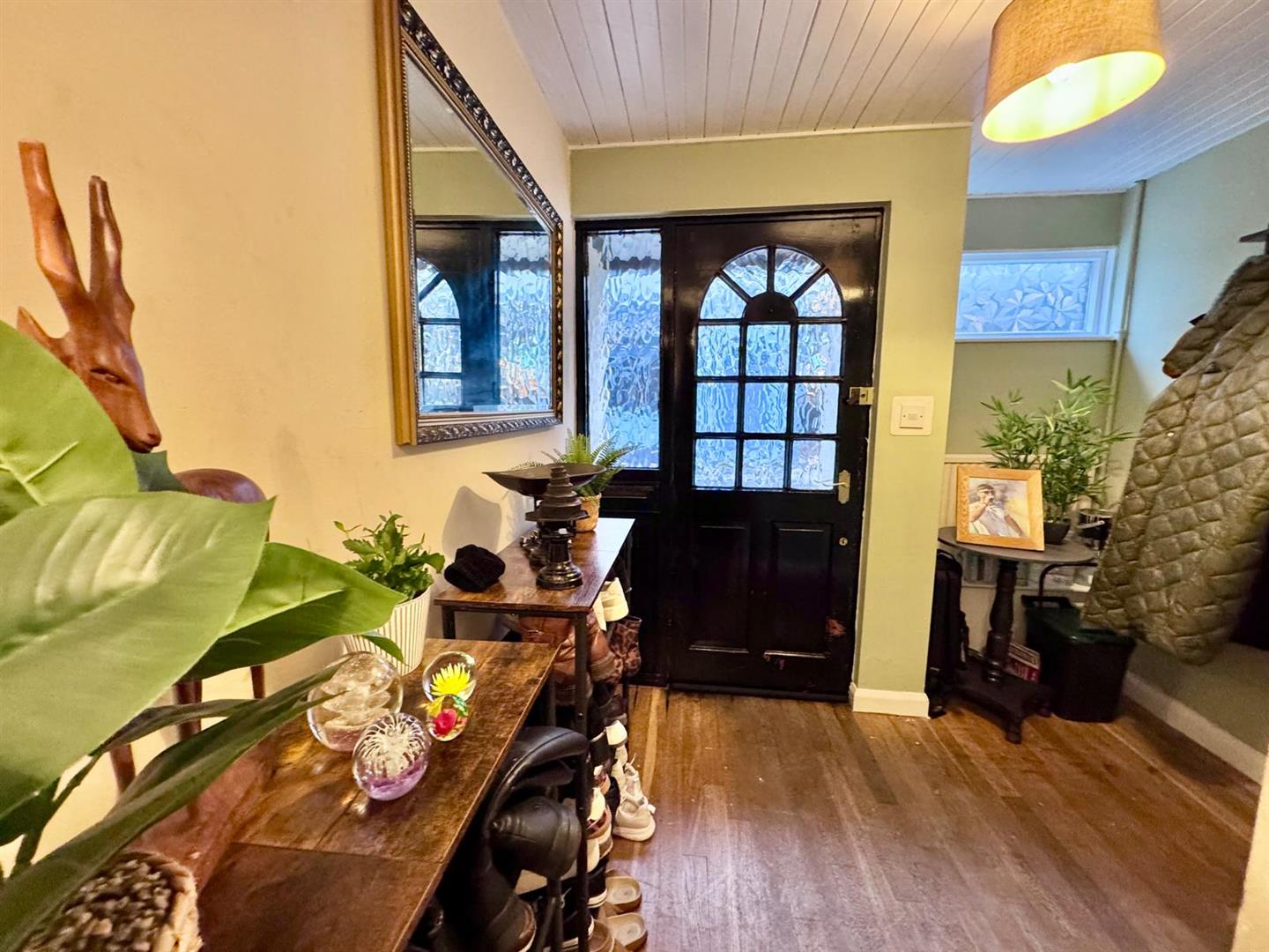 Radiator; understairs storage and cloaks cupboard; solid timber flooring; staircase leading up to first floor level.