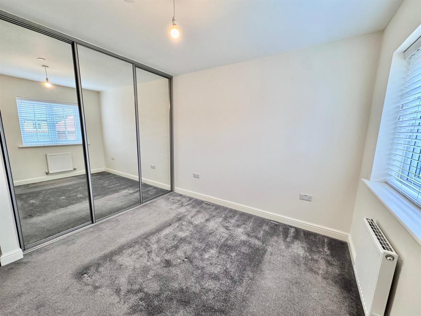 (Into wardrobe) overlooking front of property; built in wardrobes along one wall with sliding mirror doors; radiator.