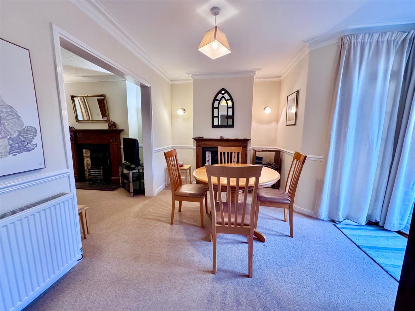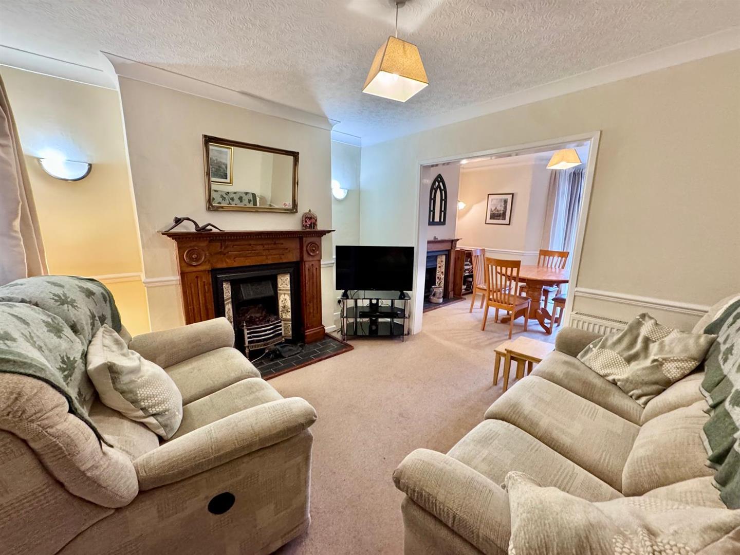 Double panelled radiator; 'Adam' style fireplace with cast iron and tiled inset; tiled hearth; dado rail; TV point; wall lights; uPVC double glazed Georgian style window overlooking rear; understairs walk-in storage cupboard.