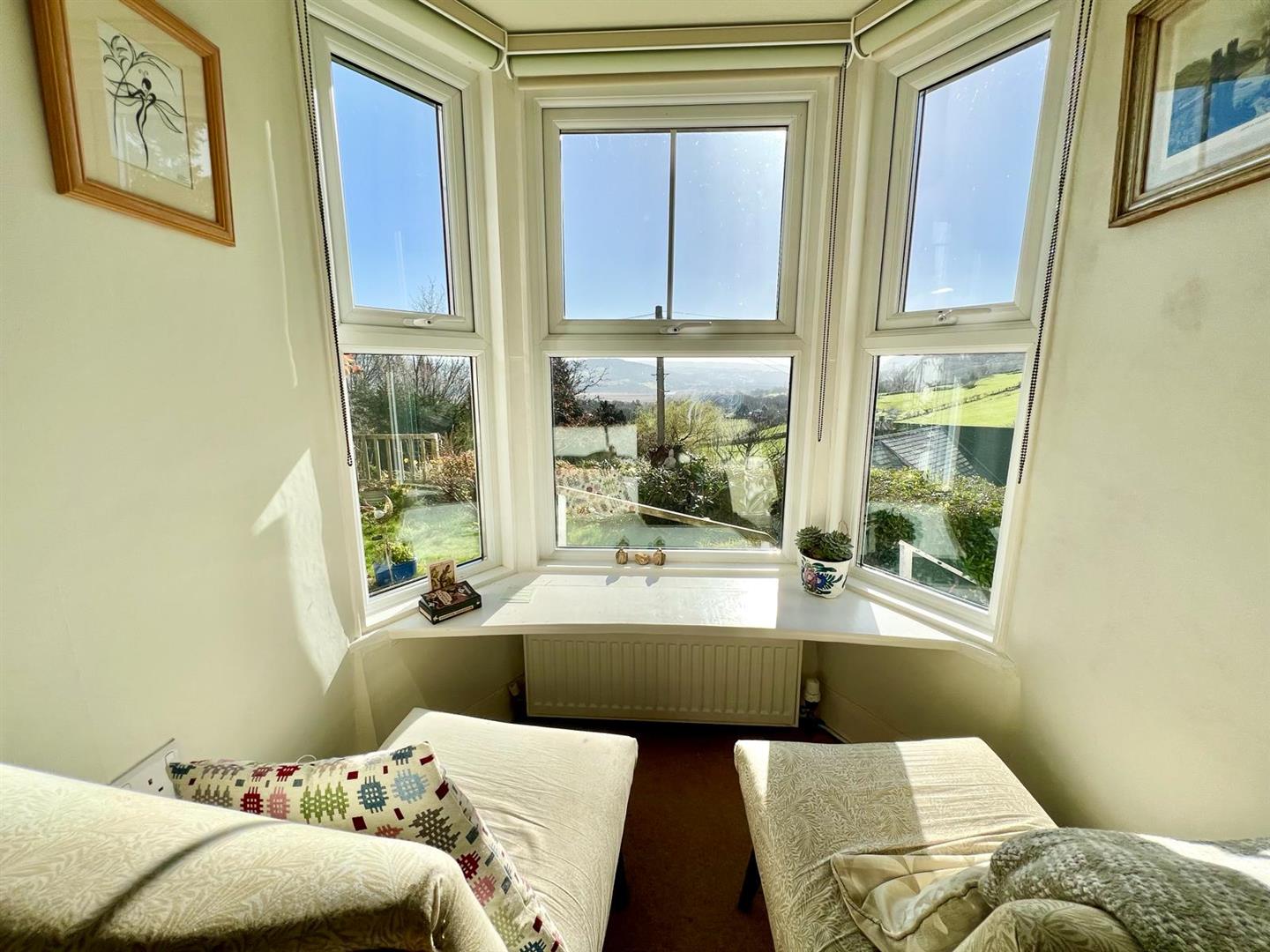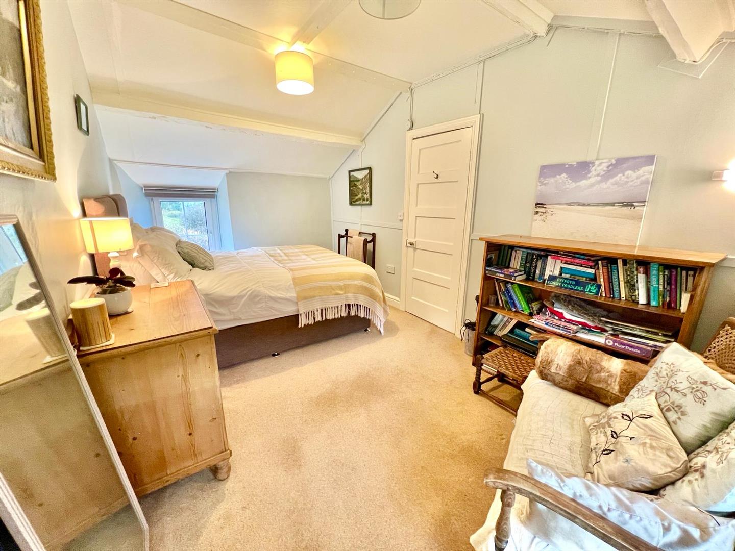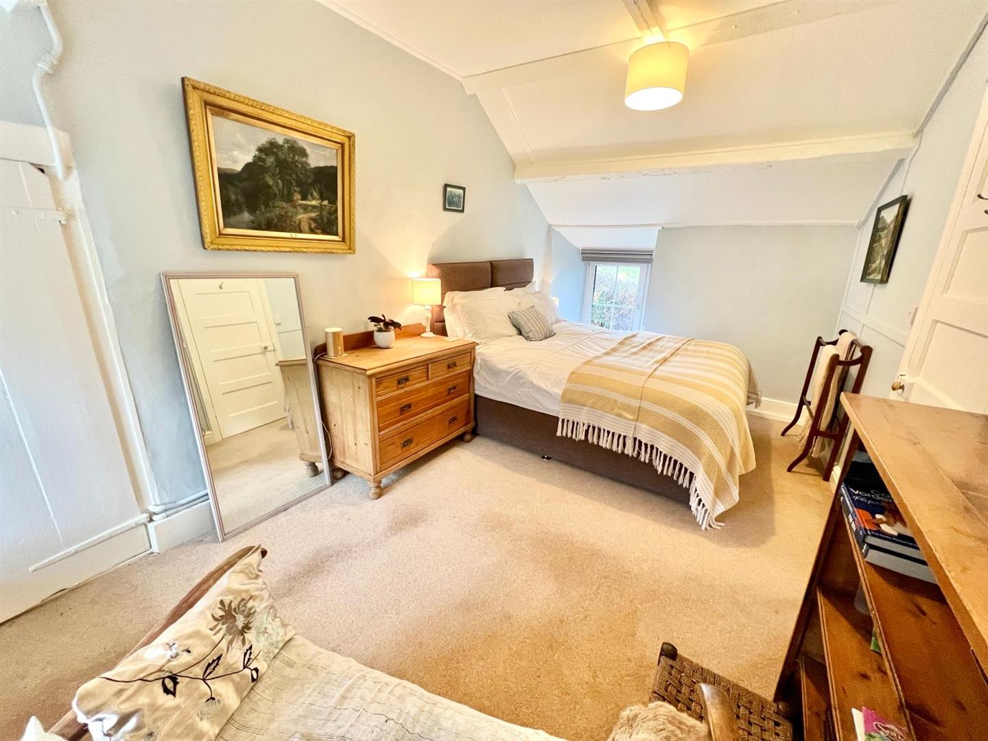 Built-in wardrobes and storage cupboards into recessed alcove; uPVC double glazed window overlooking front enjoying extensive view across the Conwy Valley.