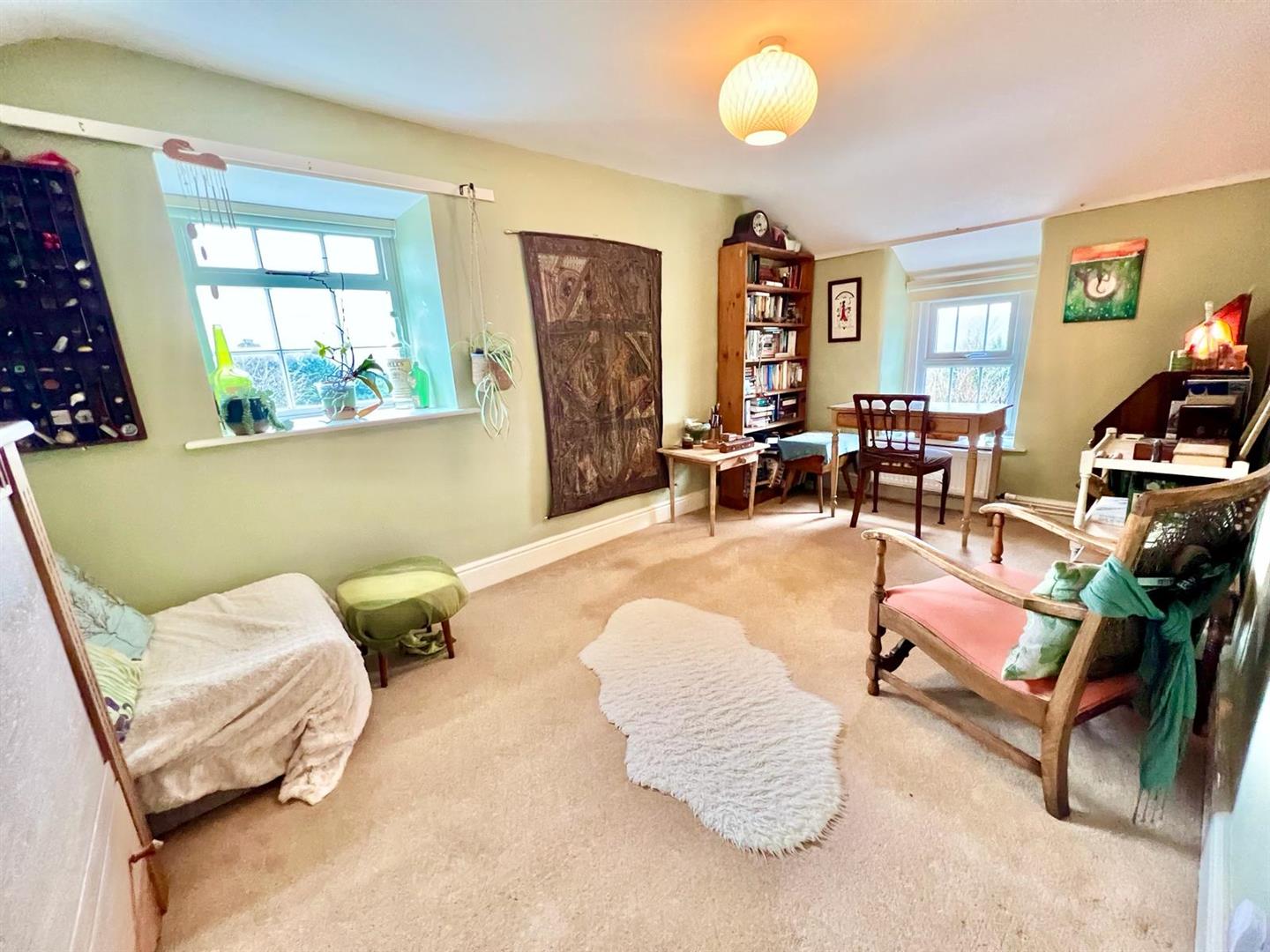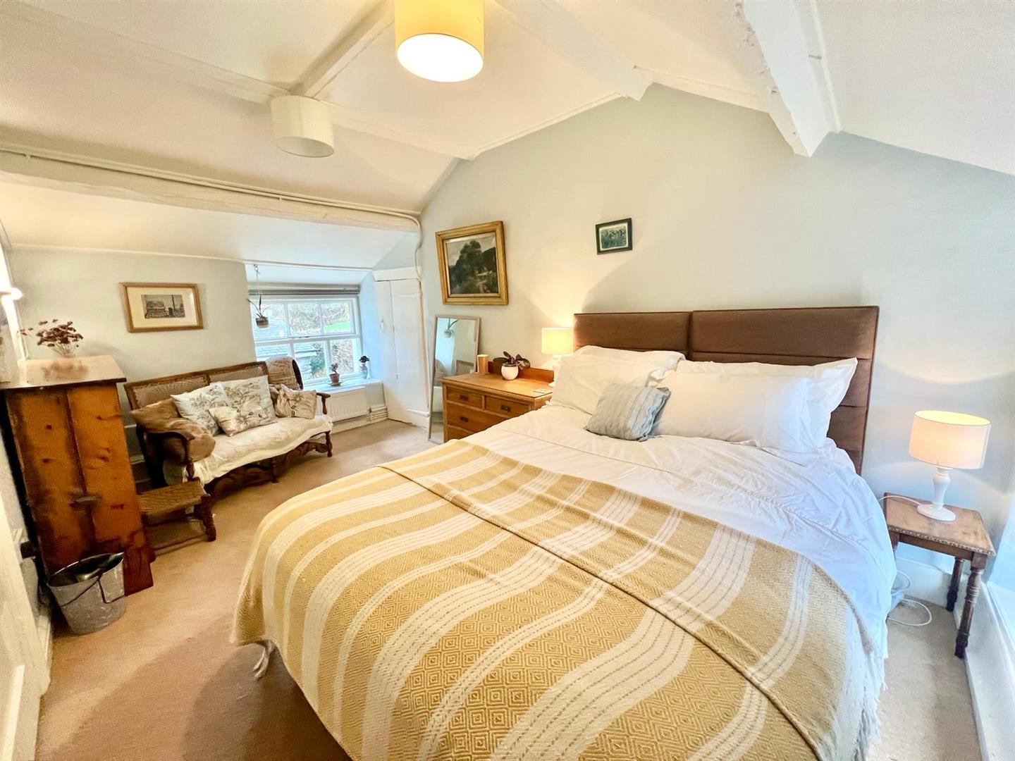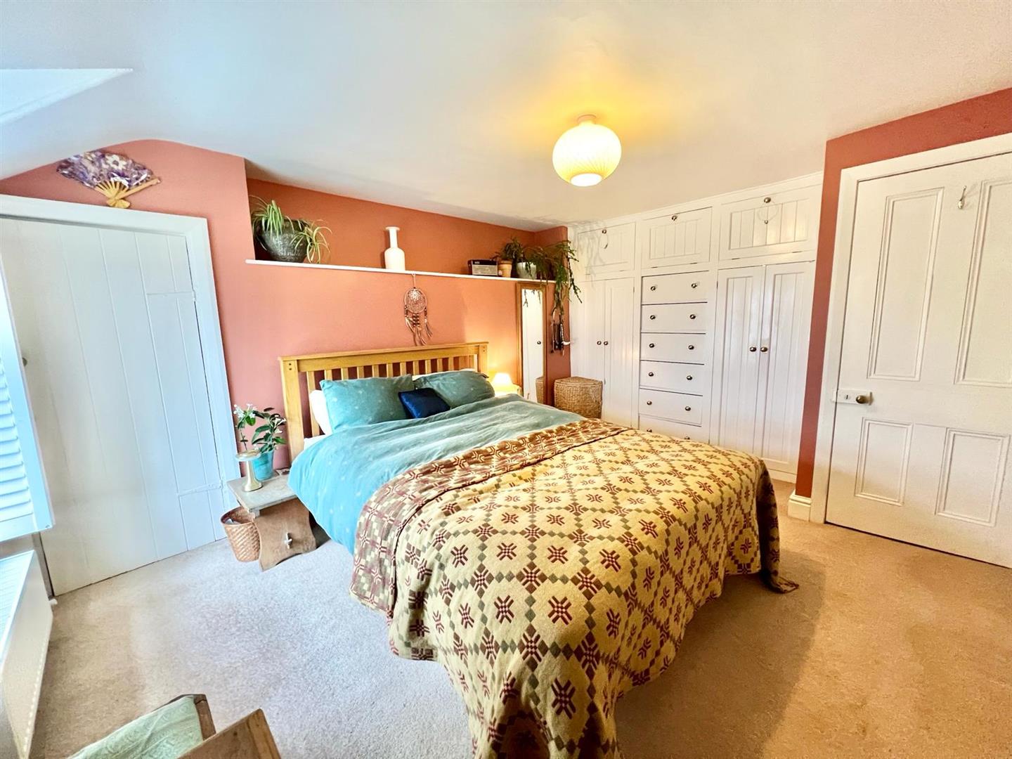 Built-in wardrobes and storage cupboards into recessed alcove; uPVC double glazed window overlooking front enjoying extensive view across the Conwy Valley.