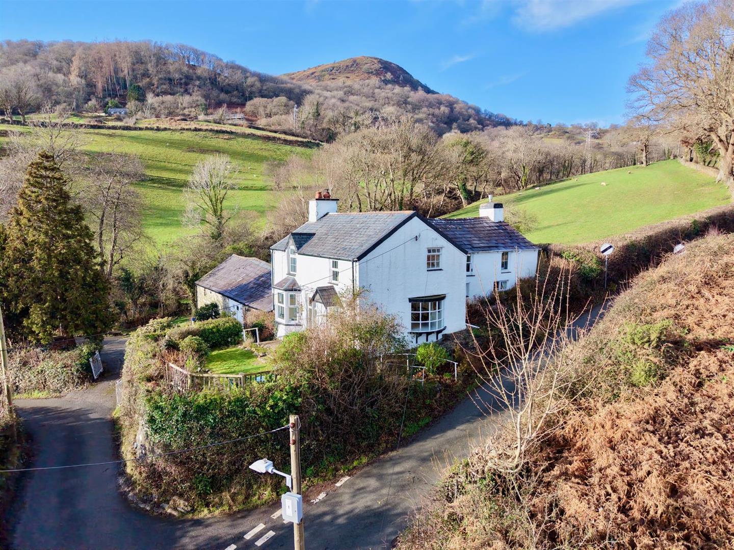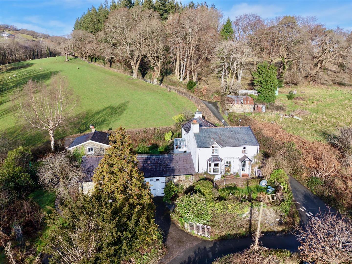 Detached character home with Cottage & Outbuildings, occupying a slightly elevated position on the outskirts of the popular rural village of Llanbedr y Cennin, within the heart of the Conwy Valley.