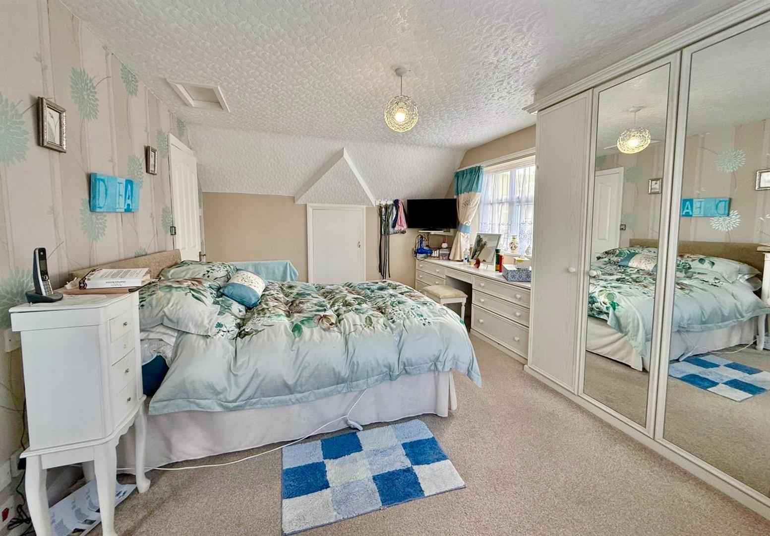 Range of fitted wardrobes; dressing table and window seating area with storage, UPVC double glazed windows; eaves storage area, door leading to Ensuite shower room.