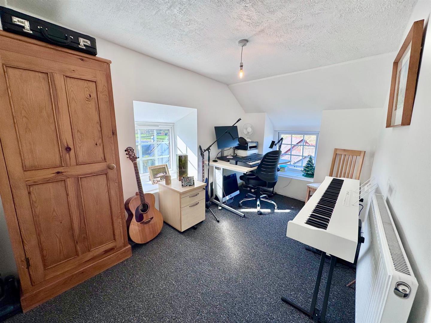 Double glazed window overlooking front and rear with panoramic views, built in wardrobe, vaulted ceiling, radiator.