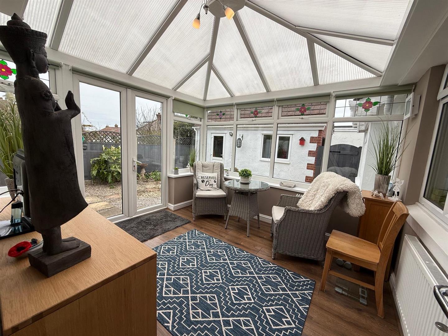 UPVC double glazed patio doors leading to front garden; radiator;