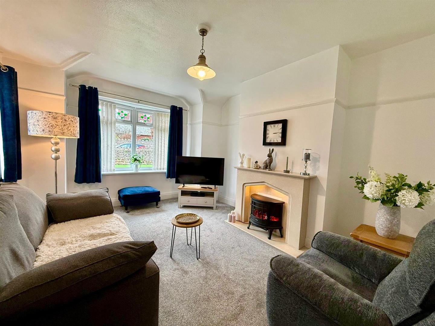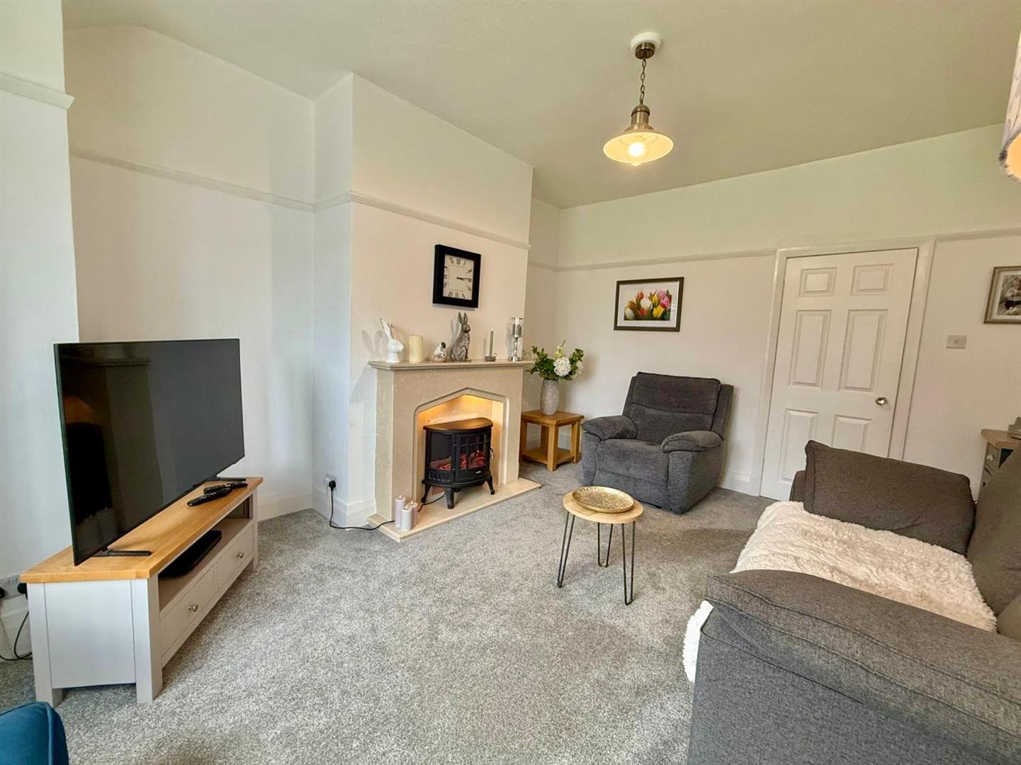 UPVC double glazed bay window to front elevation and additional UPVC double glazed window to side; radiator; feature fireplace with inset electric fire.