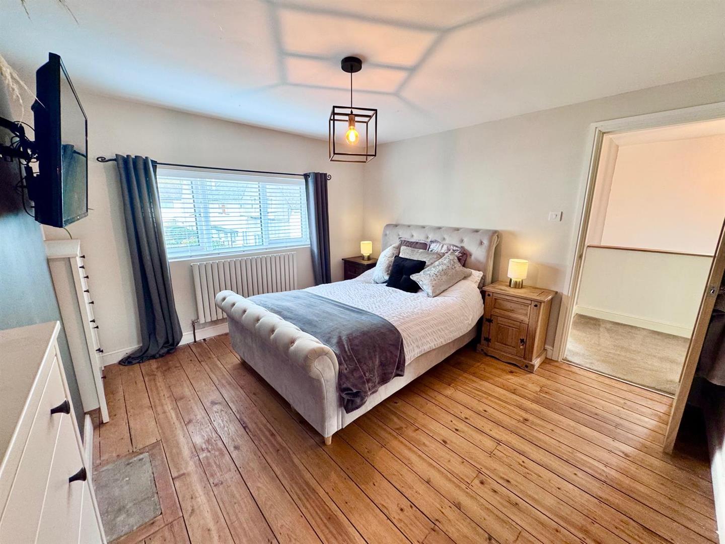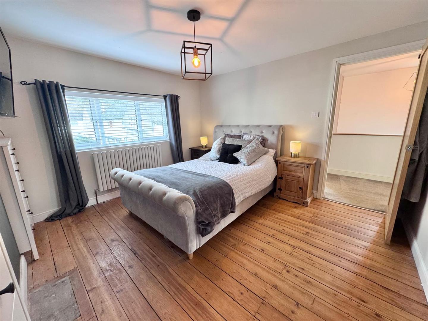 uPVC double glazed window overlooking front with open aspect, column radiator, exposed stained floorboards, TV point.