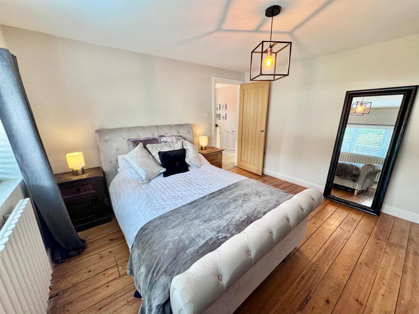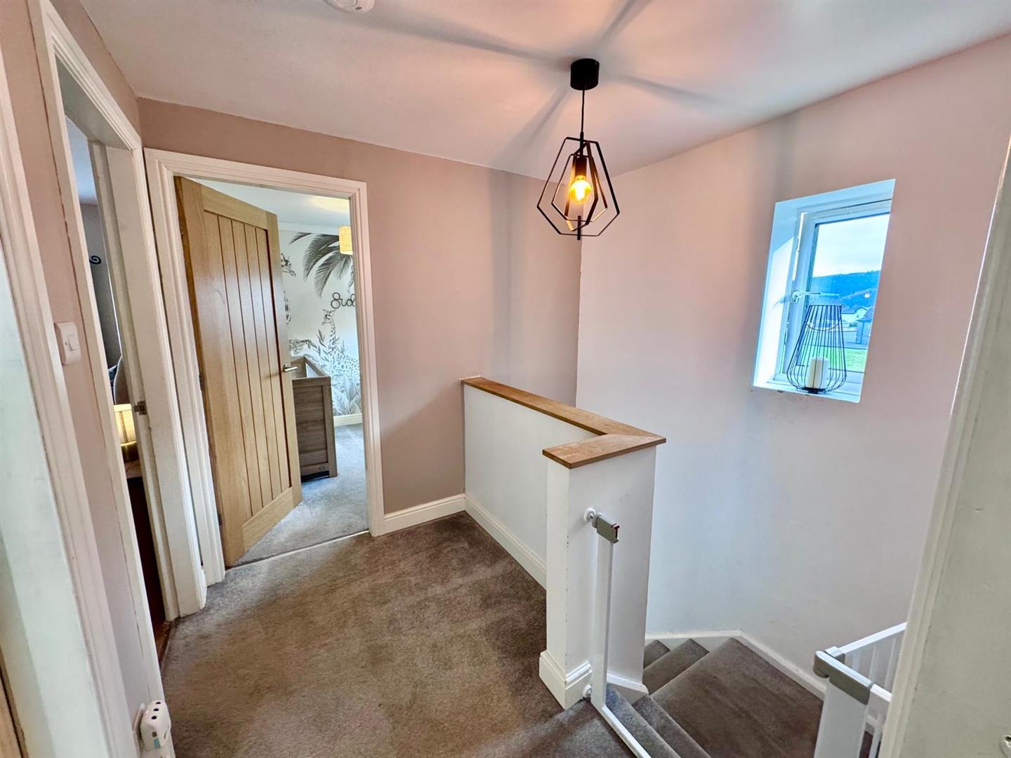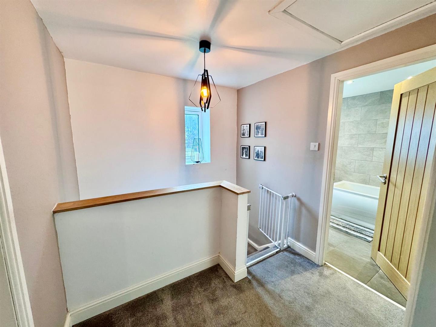Landing, access to roof space, uPVC double glazed window overlooking side, oak doors leading off.