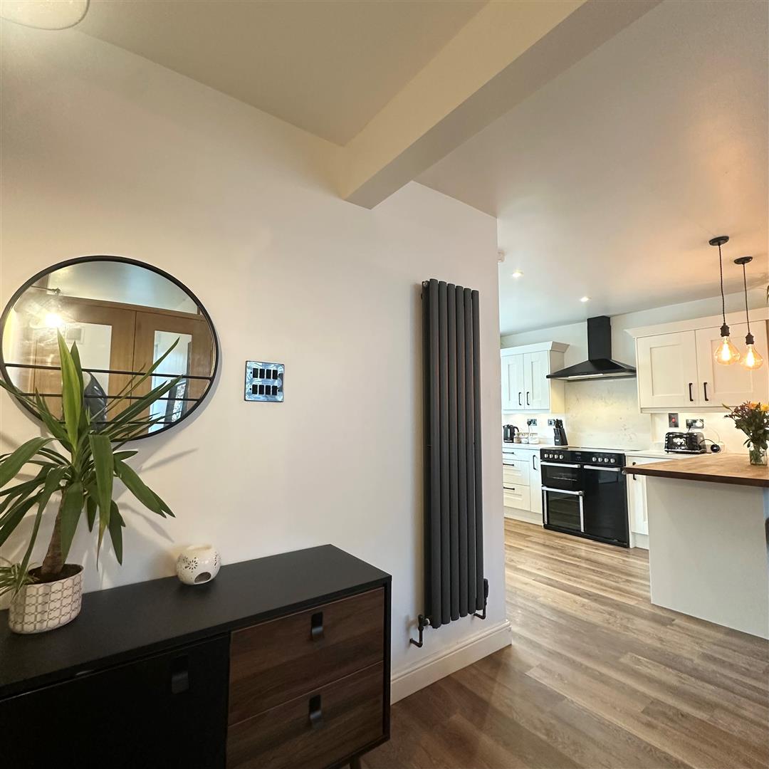uPVC double glazed door to rear and French doors leading onto side patio area, radiator, understairs storage cupboard.
