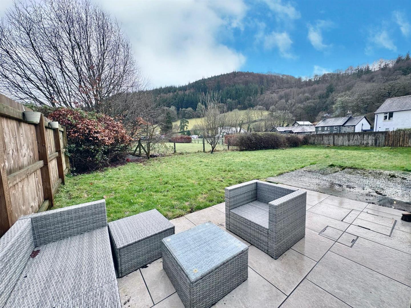 The property stands in a substantial corner plot, has off road parking, private patio area, range of brick built outside stores and former w.c. utility area, large grassed gardens overlooking playing fields and views to surrounding hillsides.