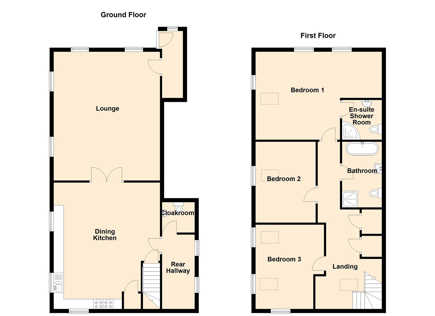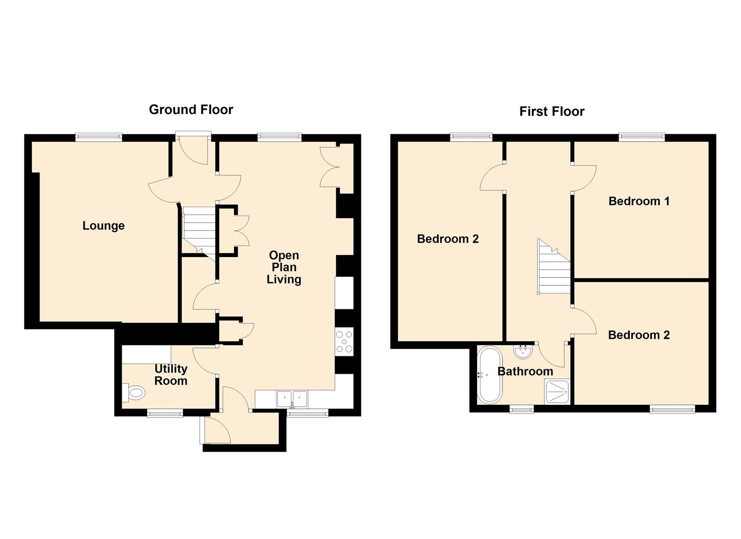 With low level w.c, vanity washbasin, plumbing for automatic washing machine, wall mounted Worcester boiler for central heating and hot water, base and wall units, column radiator. Rear entrance porch with composite rear door.
