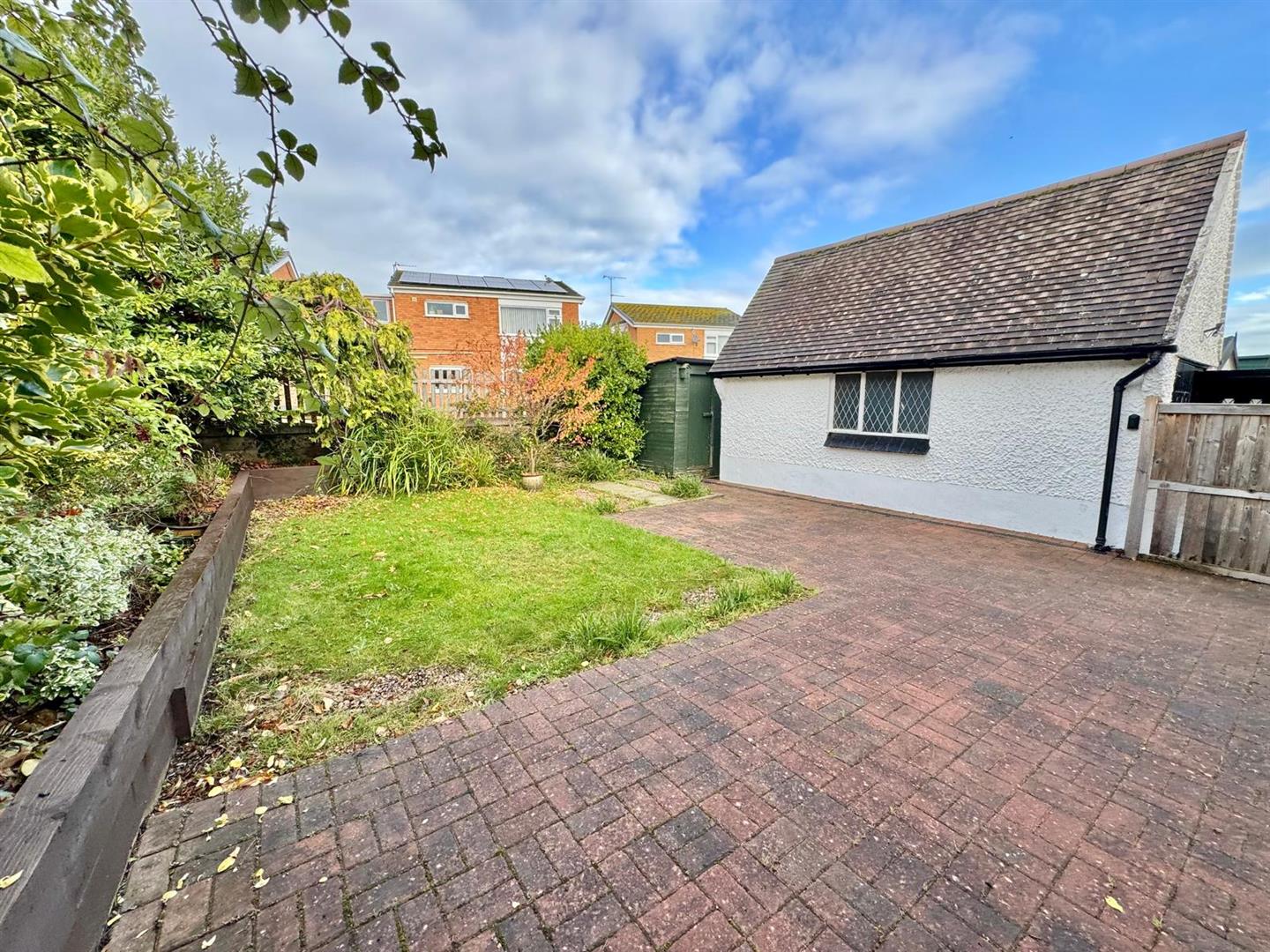 Sizeable enclosed rear garden with brick paved hardstanding and patio; grassed garden; raised borders with established shrubs and plants. Located alongside the driveway there is a water tapand outside Belfast style sink style sink.