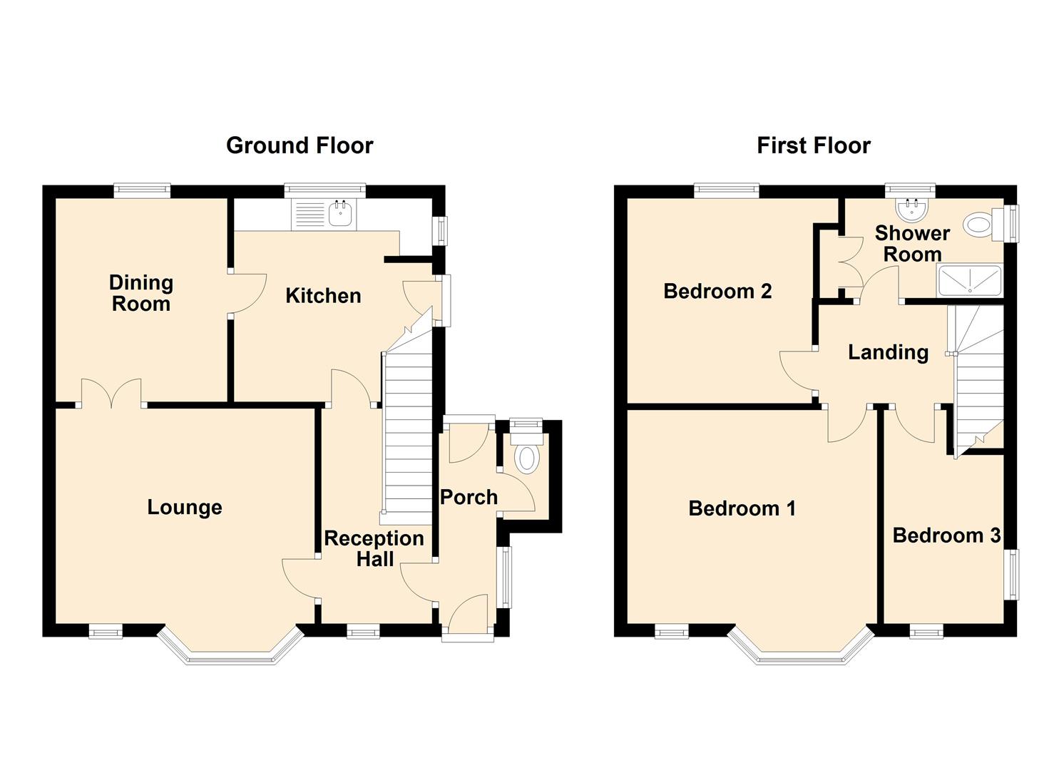 Enclosed entrance porch with downstairs WC and uPVC entrance door opening into Reception Hall. Living room with twin doors leading through to the Dining room, enjoying views over the rear garden. Fitted Kitchen with access to the outside.