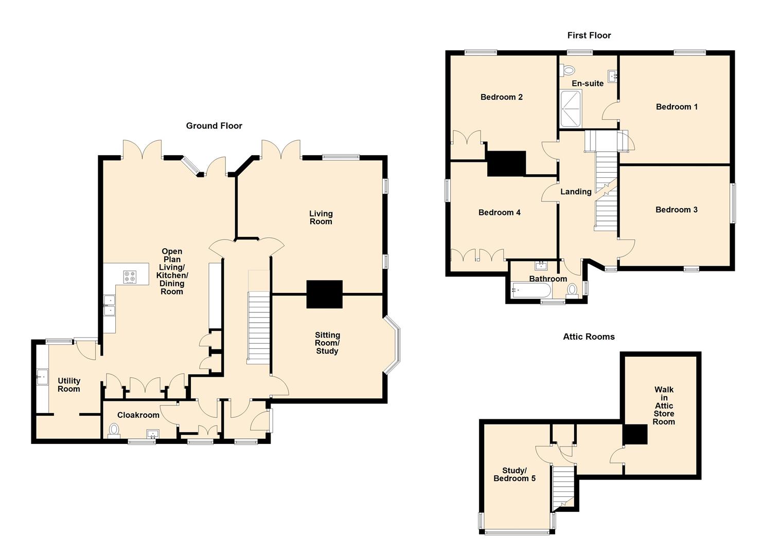 The first floor offers four well-proportioned double bedrooms, including a luxurious principal suite with en-suite bathroom, and a stylish, recently fitted main family bathroom.