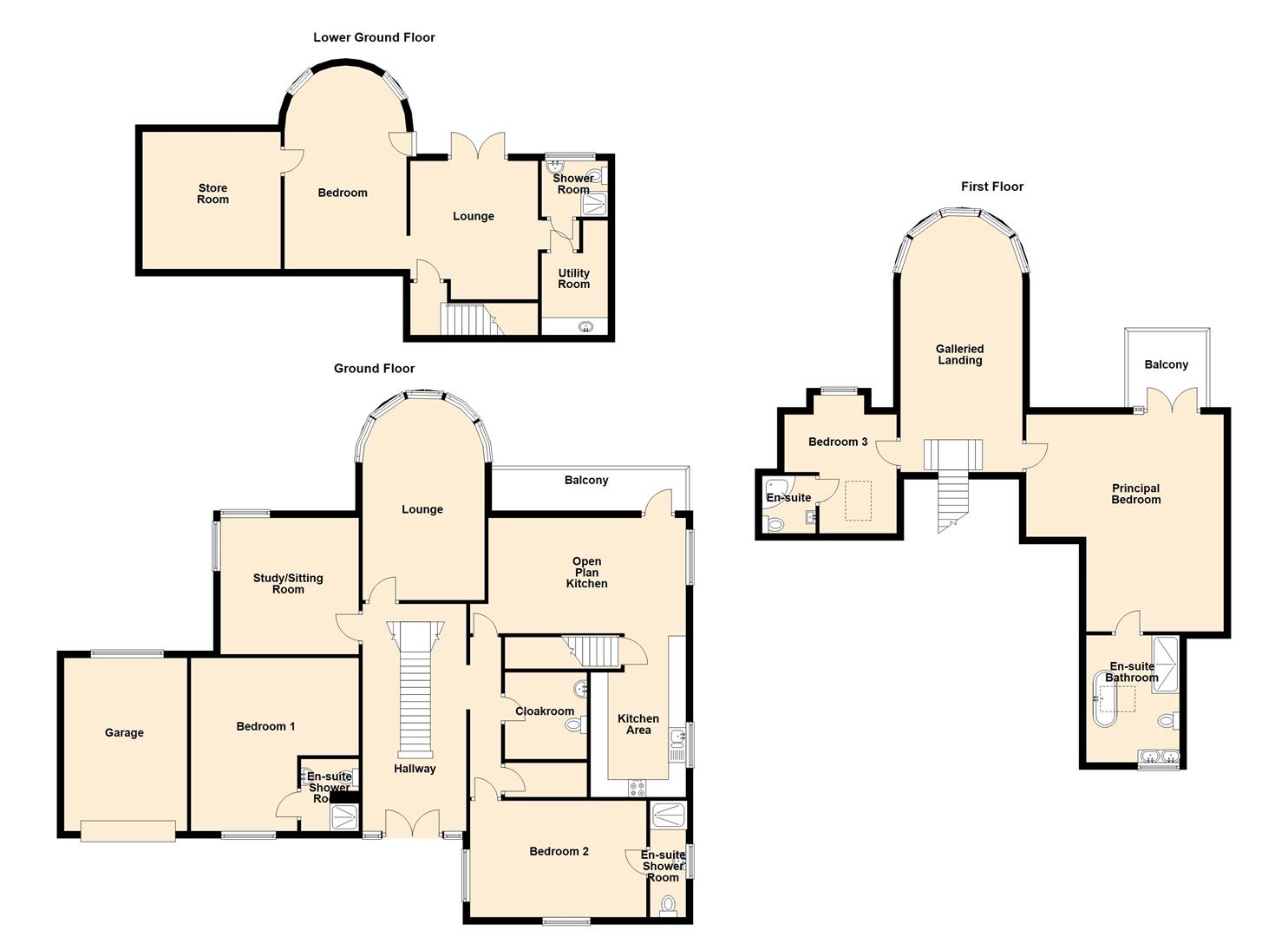 With downstairs cloakroom, low level suite and wash basin, separate walk in cloaks cupboard with ample boot and coat storage area.